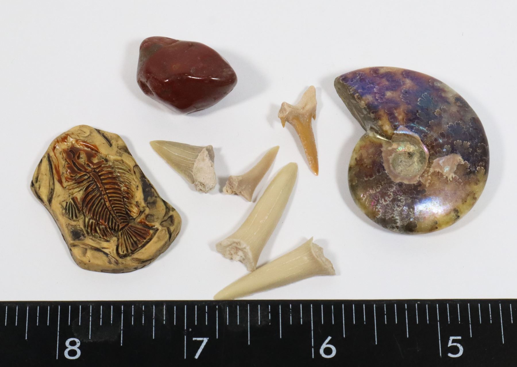 FOSSILIZED SHARKS TEETH AND ONE PLASTIC FOSSIL**ITEM(S) LOCATED IN LETHBRIDGE ALBERTA. ALL ITEMS IN THIS AUCTION ARE ELIGIBLE FOR FREE TRANSPORT TO EDMONTON. EXPECT 1 TO 3 WEEK WAIT FOR ITEMS TO ARRIVE IN EDMONTON. WORLDWIDE SHIPPING THROUGH CANADA POST AVAILABLE