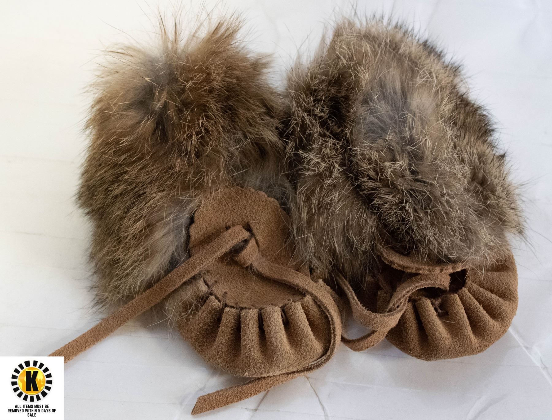 BABY FUR & LEATHER MOCCASINS SIZE2