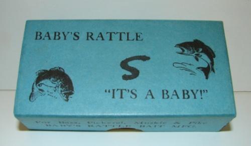 BABY’S RATTLE BAIT MFG. FISHING LURE. Baby’s Rattle. No. J S-1. Has original box.