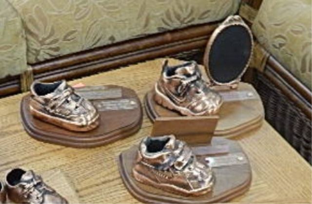 BABY SHOES - BRONZE ON PLAQUES - 3 PC WITH ZODIAC AND 2 BIRTH STONES