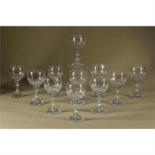 CRYSTAL STEMWARE: Eleven clear crystal water goblets by Baccarat, ''Messena'' pattern, vertical cut design extending from base to bowl, 7'', no damage noted.