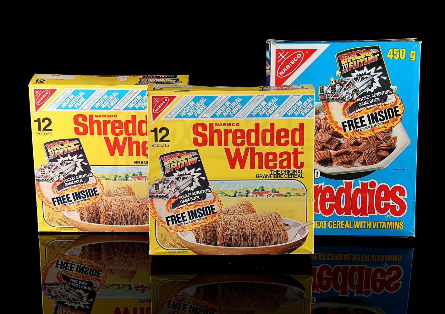 Three Back to the Future themed cereal boxes released in 1985. Retail price sticker on top of one box.