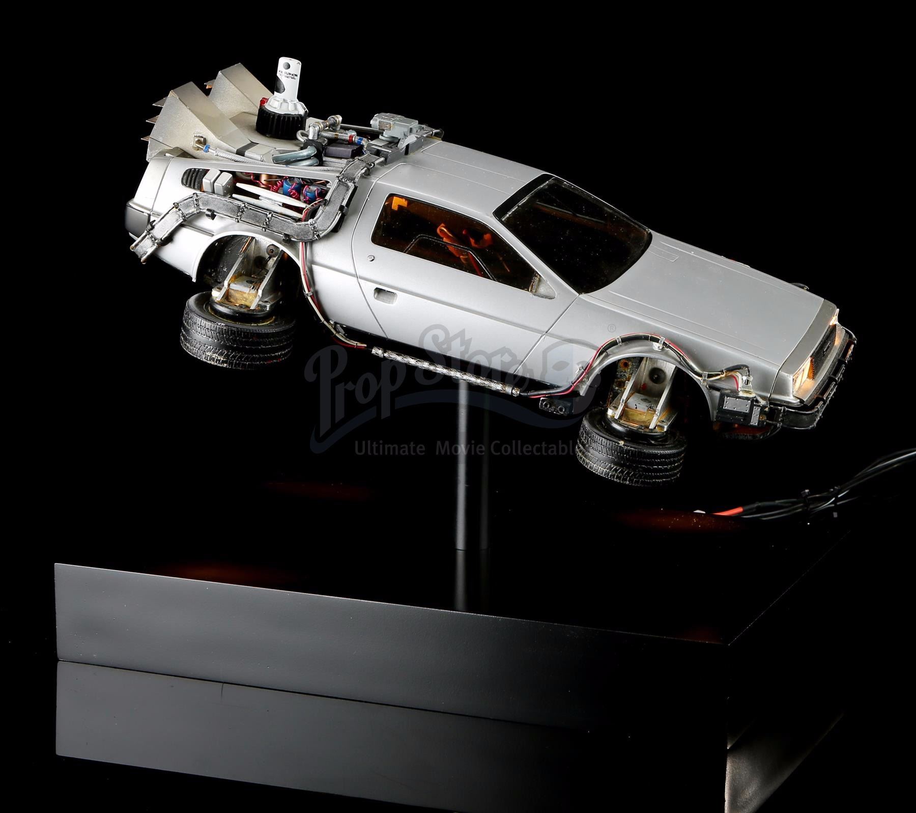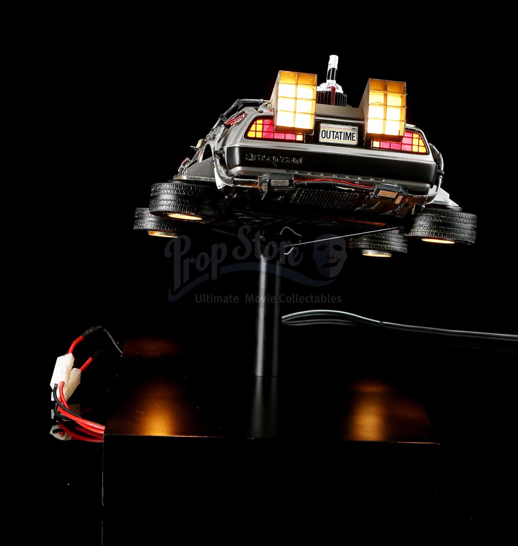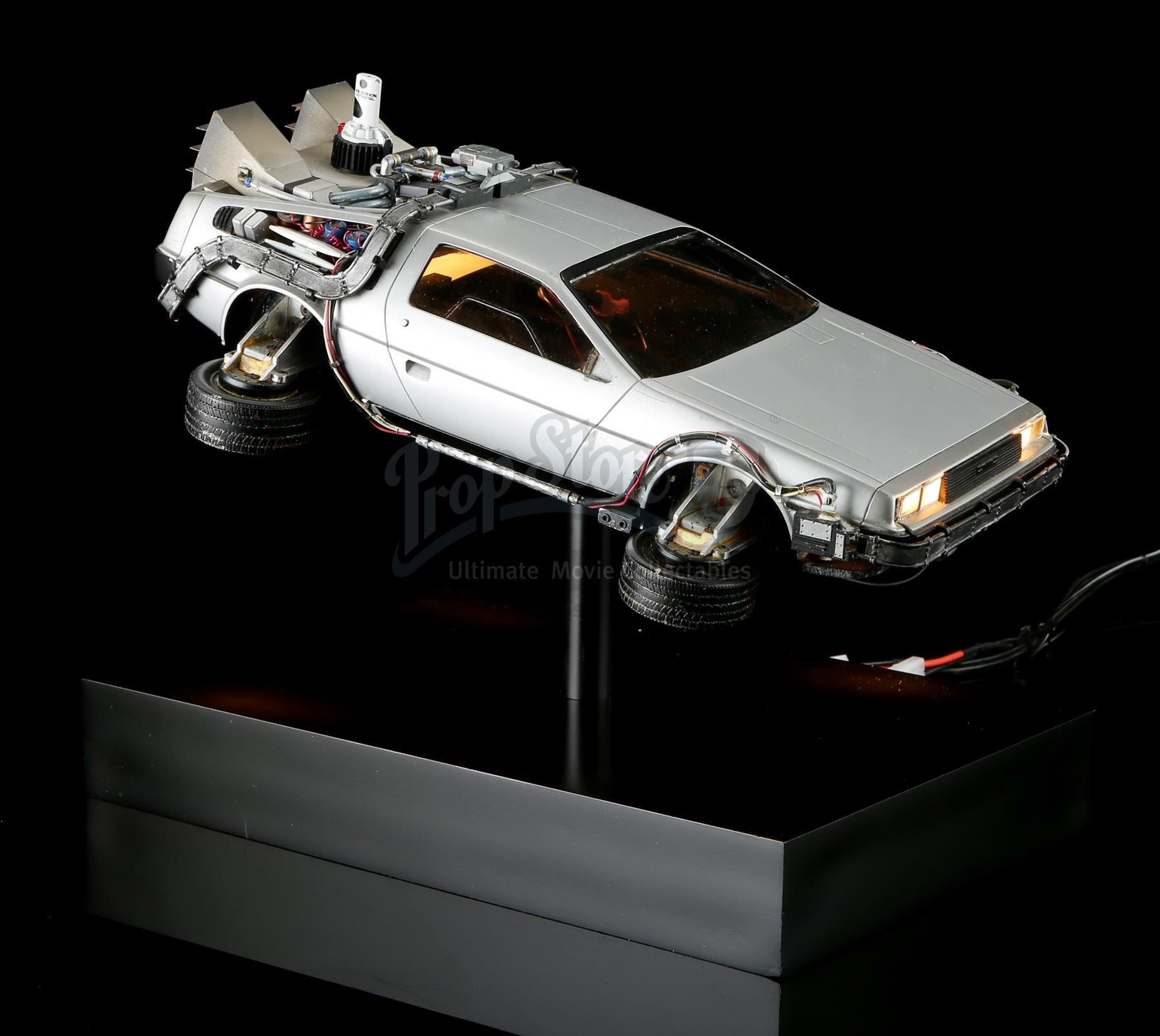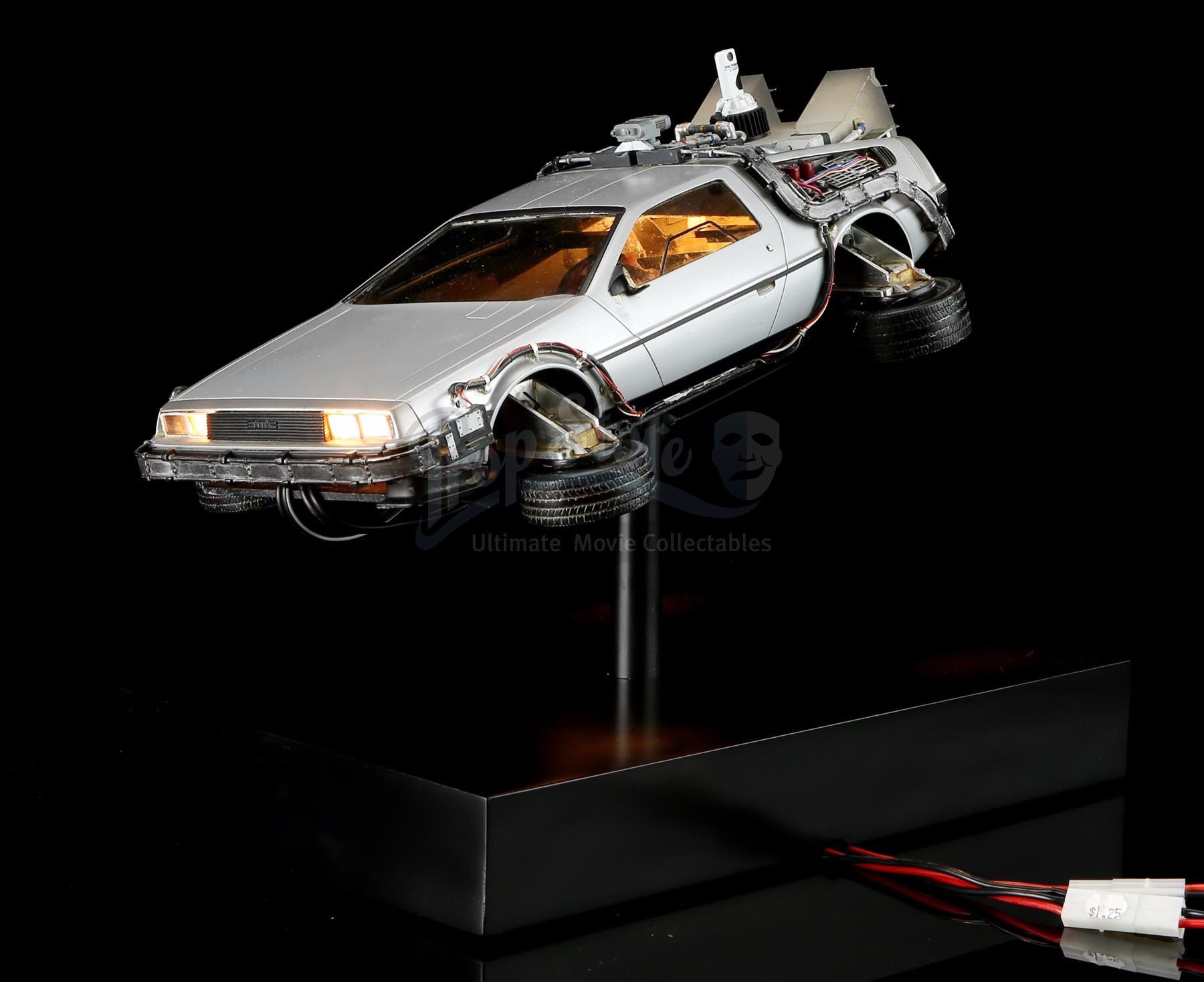 A DeLorean time machine light-up model miniature from the Universal Studios attraction Back to the Future: The Ride. The attraction, which ran from 1991 - 2007 (2016 in Japan), showed Biff Tannen (Thomas F. Wilson) stealing the DeLorean for a joyride through time, with Doc Brown (Christopher Lloyd) and the audience in close pursuit. In addition to original cast members Lloyd and Wilson, Steven Spielberg served as creative consultant on the project.