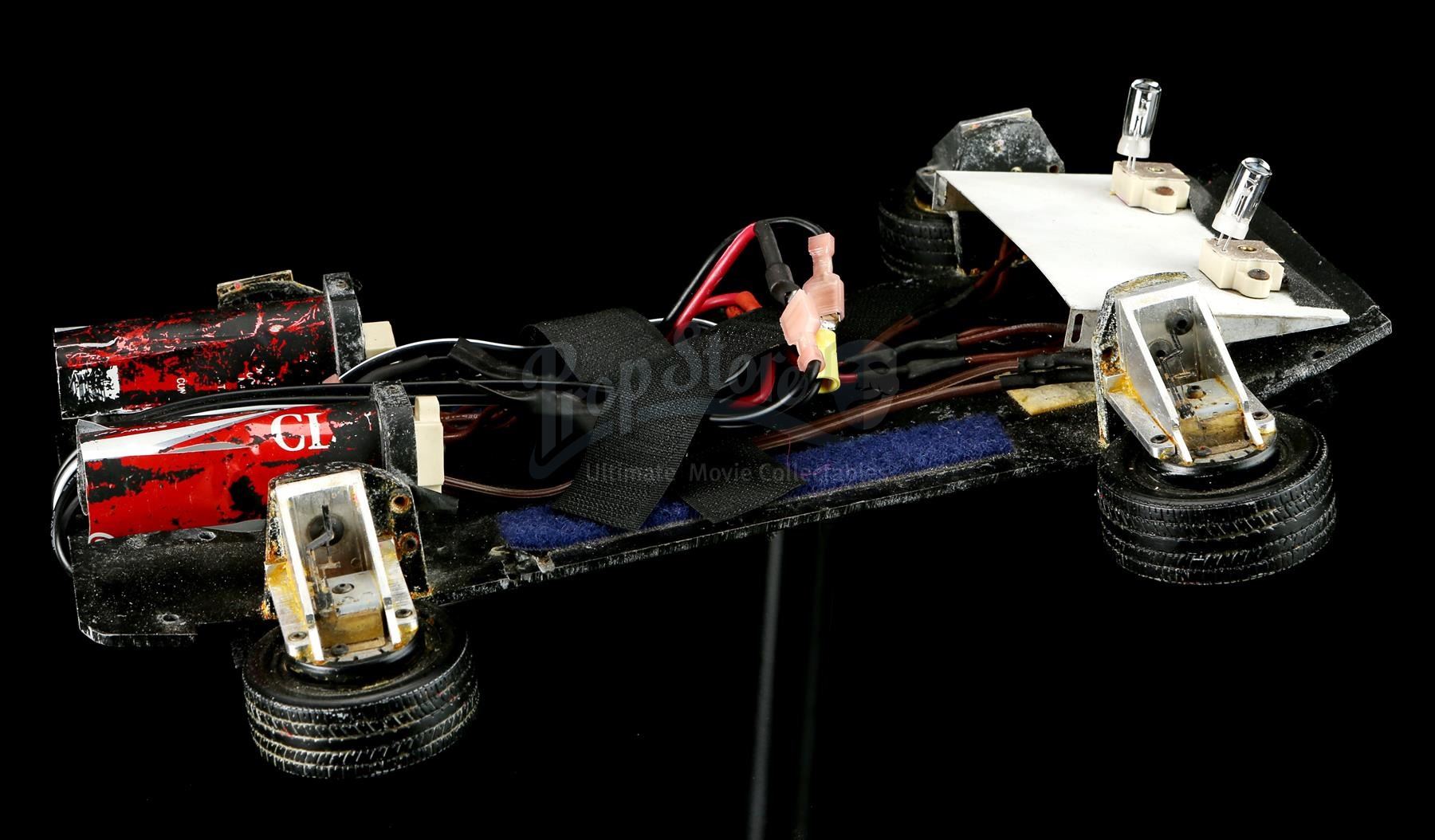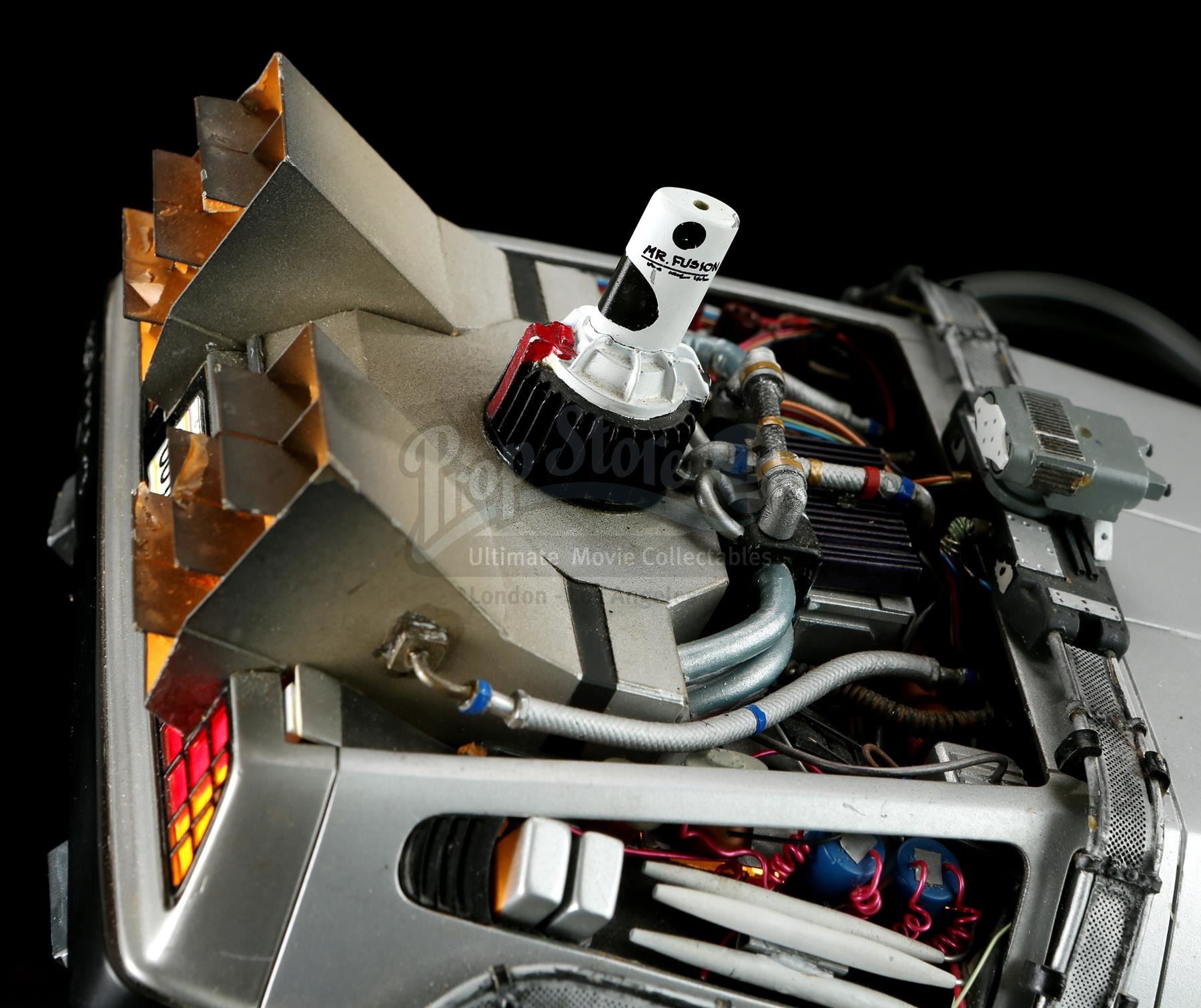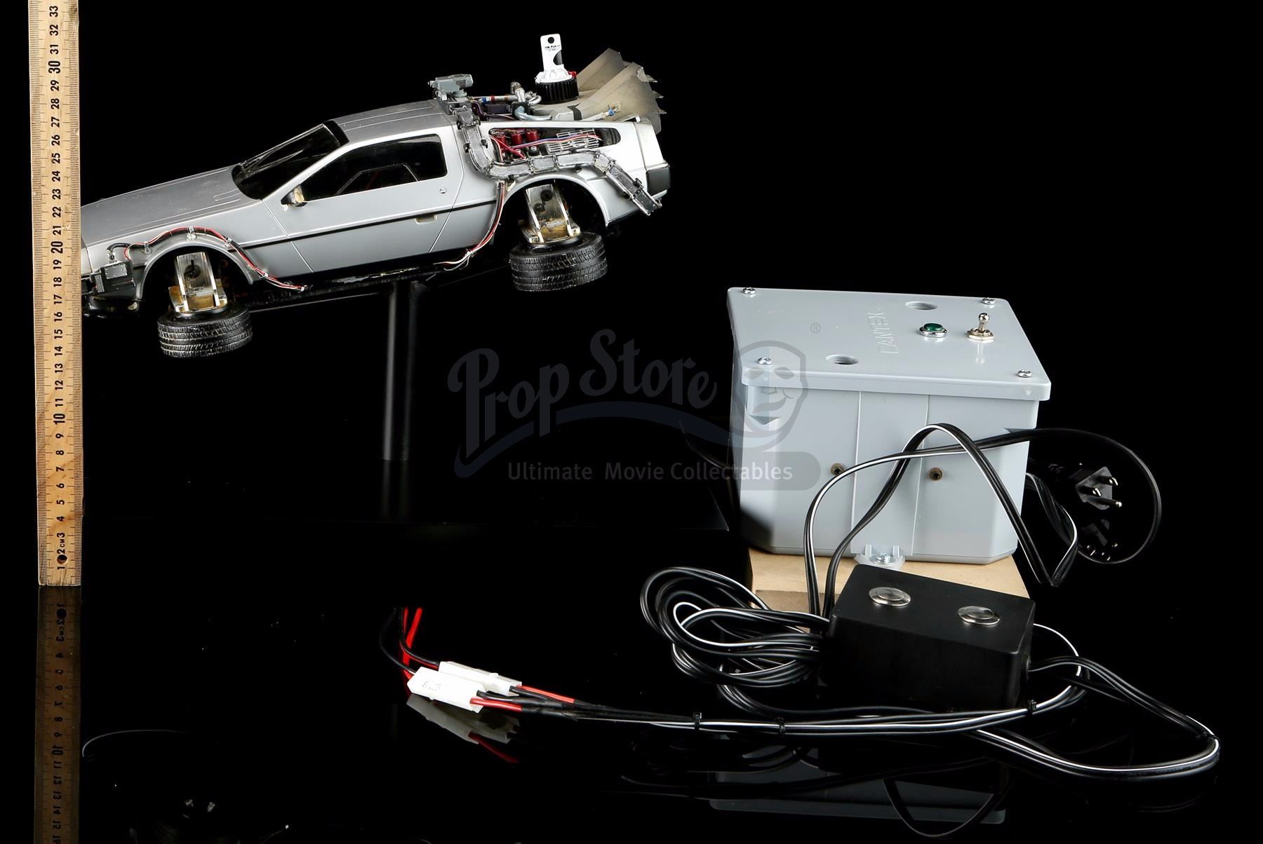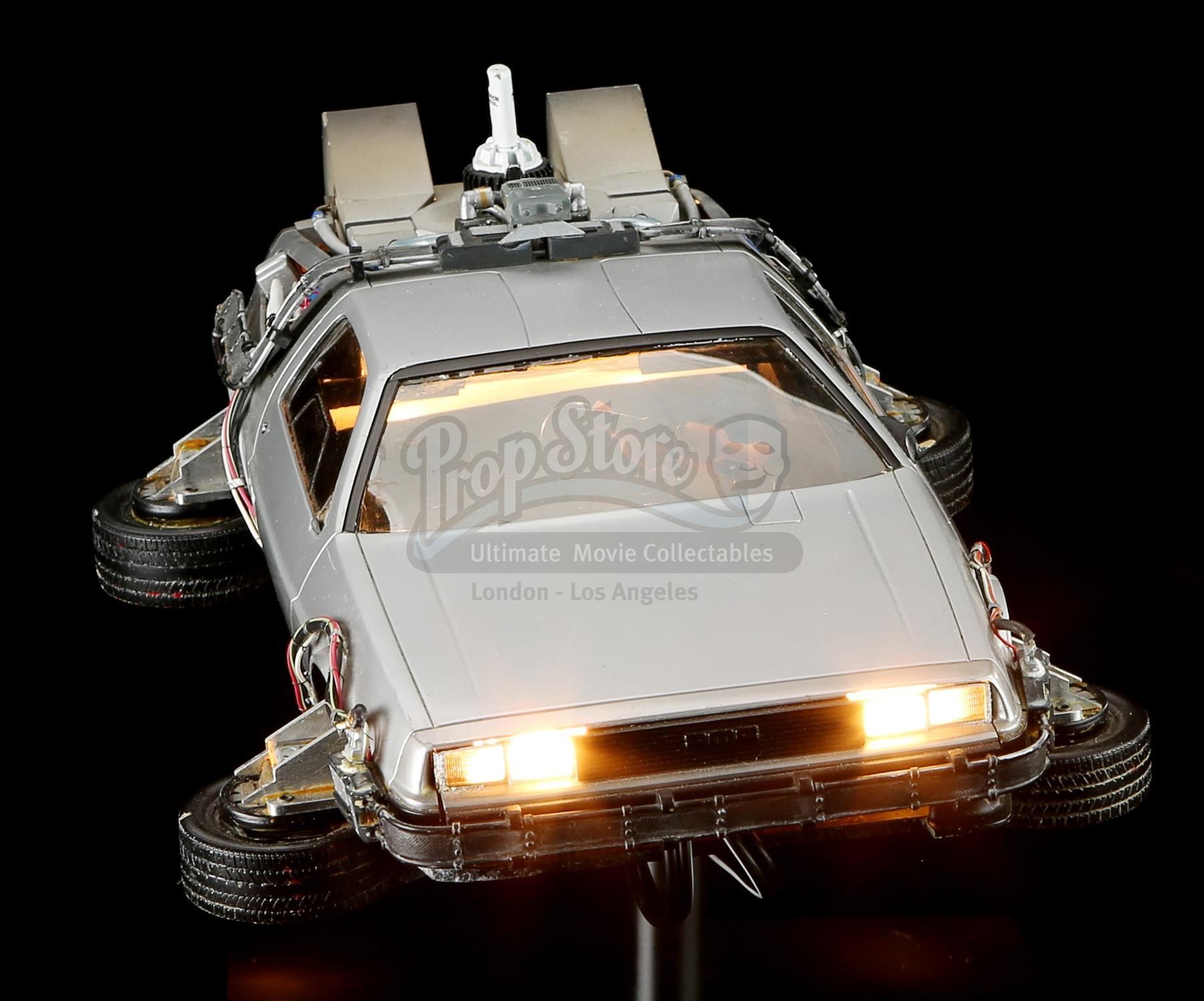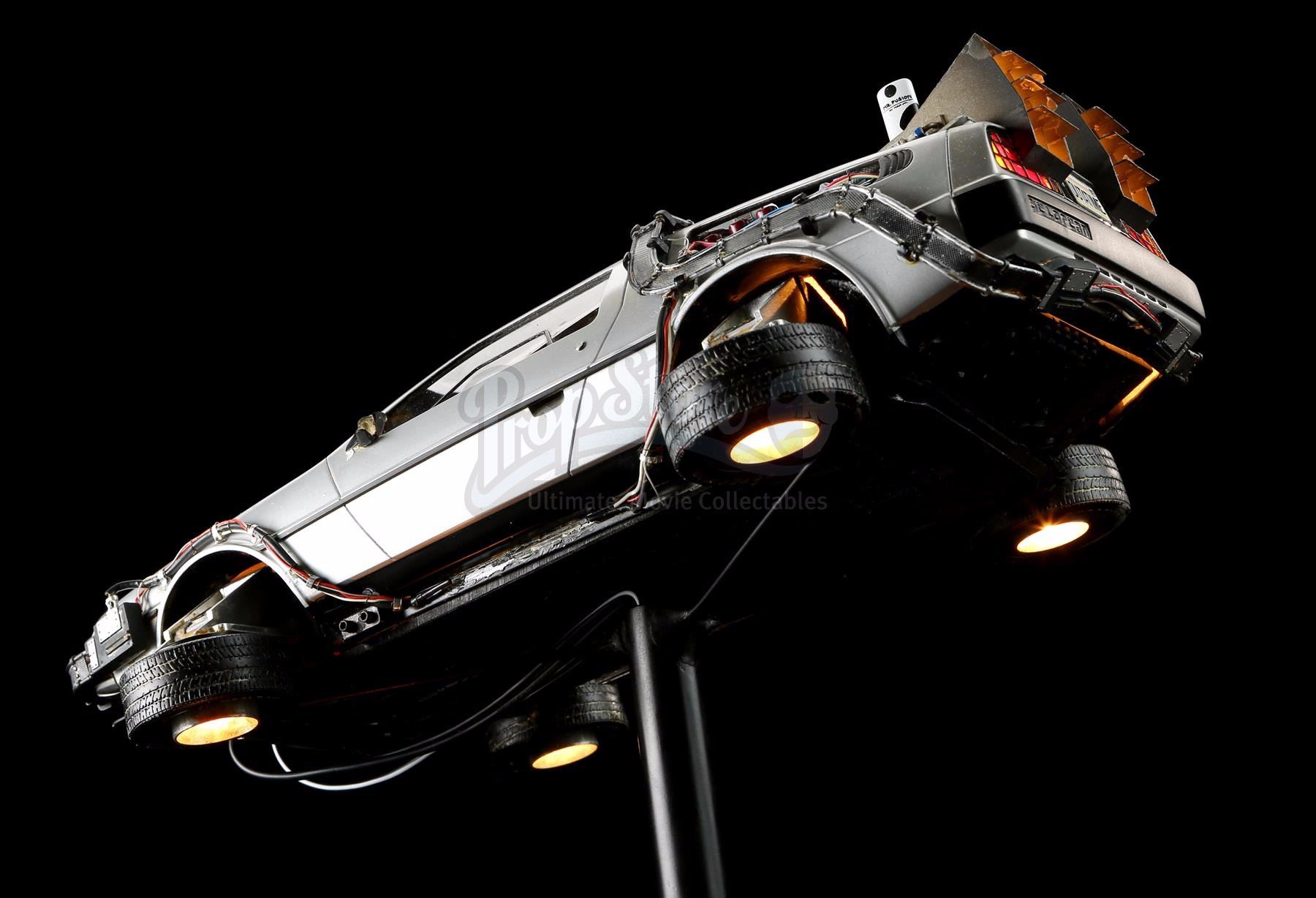 A DeLorean time machine light-up model miniature from the Universal Studios attraction Back to the Future: The Ride. The attraction, which ran from 1991 - 2007 (2016 in Japan), showed Biff Tannen (Thomas F. Wilson) stealing the DeLorean for a joyride through time, with Doc Brown (Christopher Lloyd) and the audience in close pursuit. In addition to original cast members Lloyd and Wilson, Steven Spielberg served as creative consultant on the project.