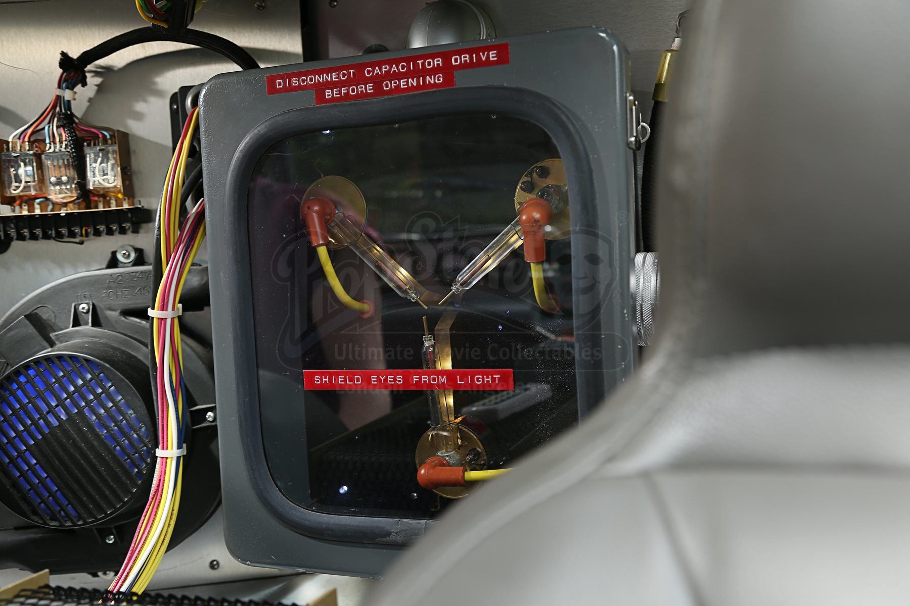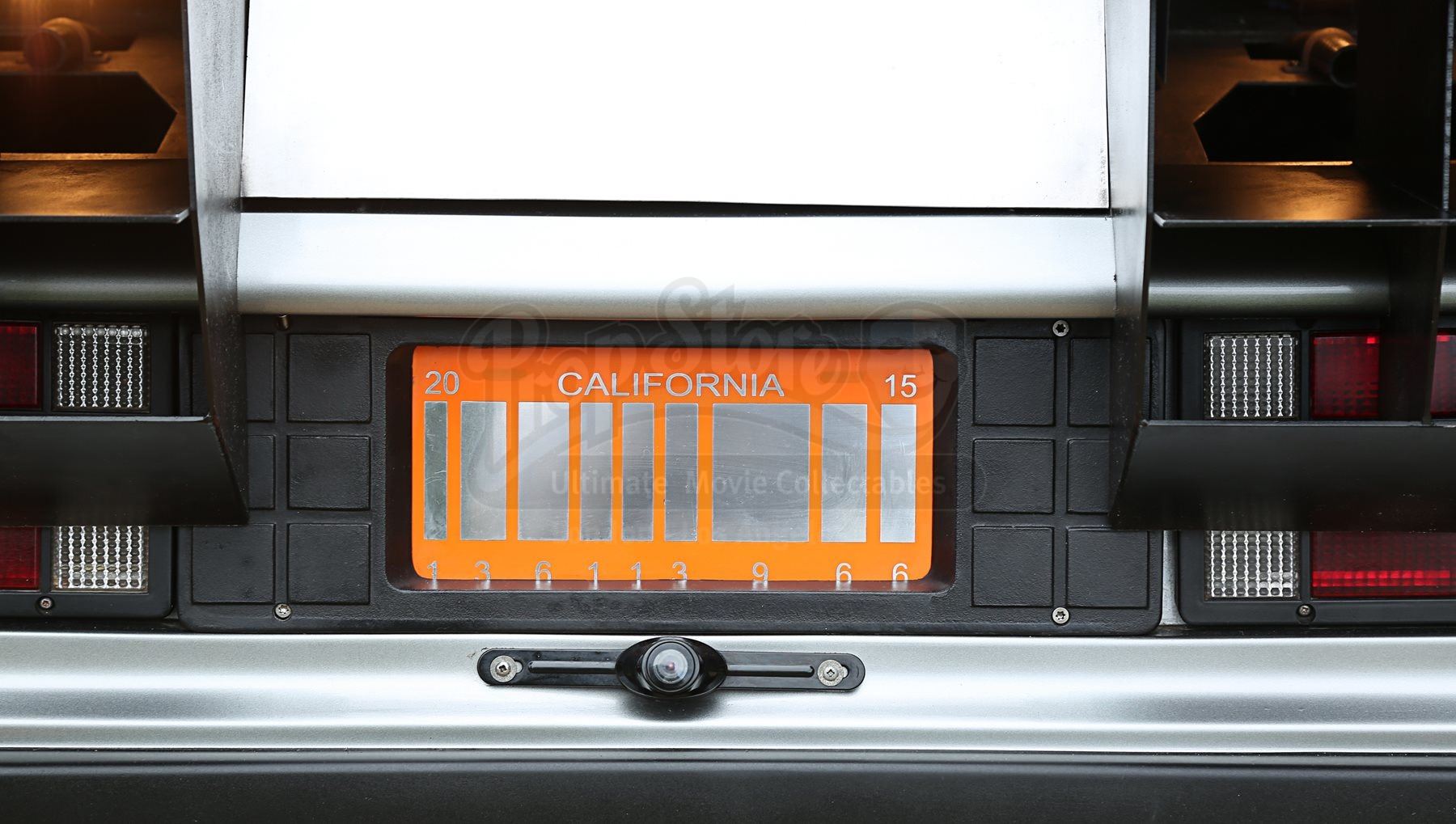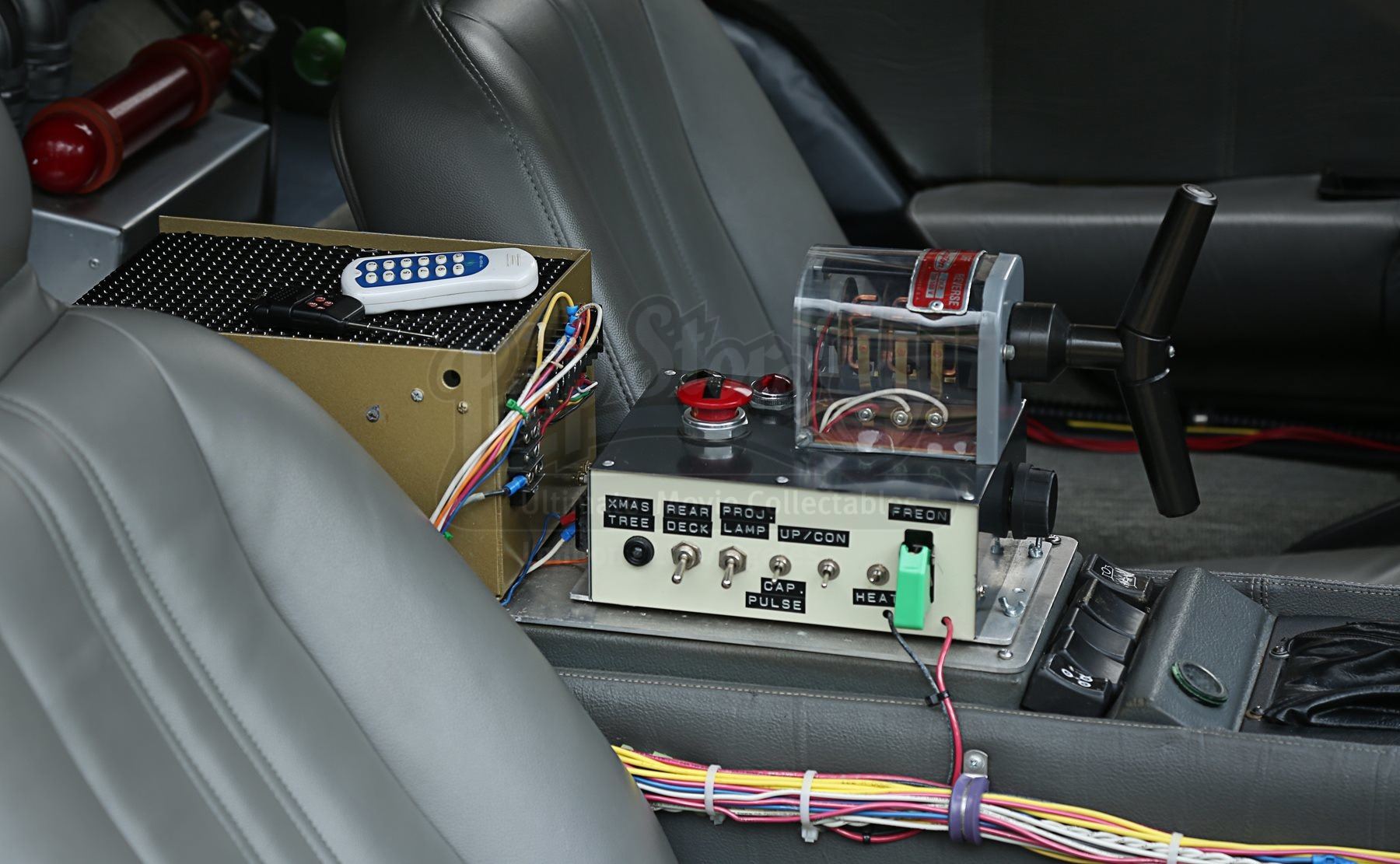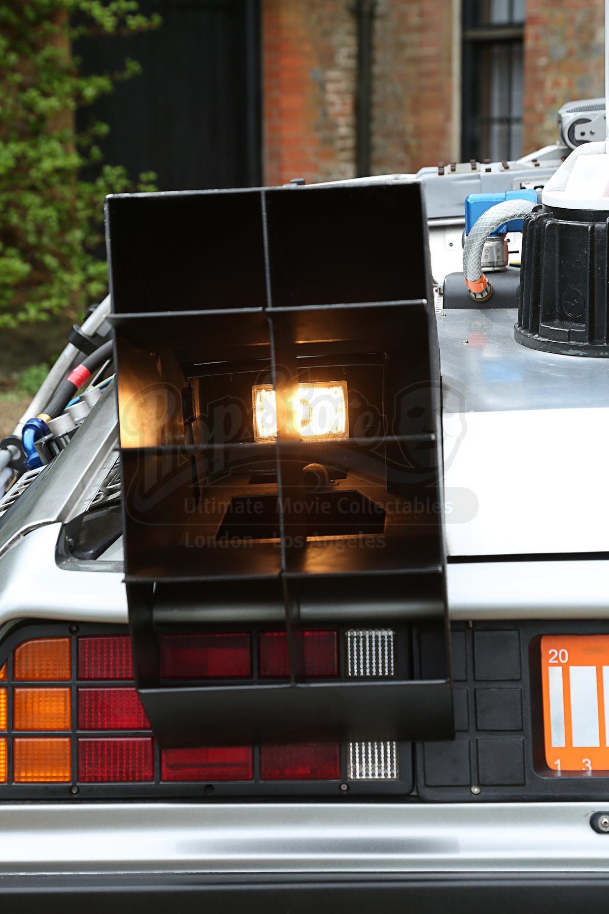 The car includes a fog machine hooked up to the rear vents, and numerous sound clips can be played via internal and external speakers, all activated via remote control. A set of hover wheels are included which, when clipped over the standard wheels, give the illusion of flying. The final addition is a replica Mattel Hoverboard which stands to the side of the car for the complete time-travel experience. The car’s heat sink has been autographed by Christopher Lloyd and franchise co-creator Bob Gale. A spare heat sink is also provided.