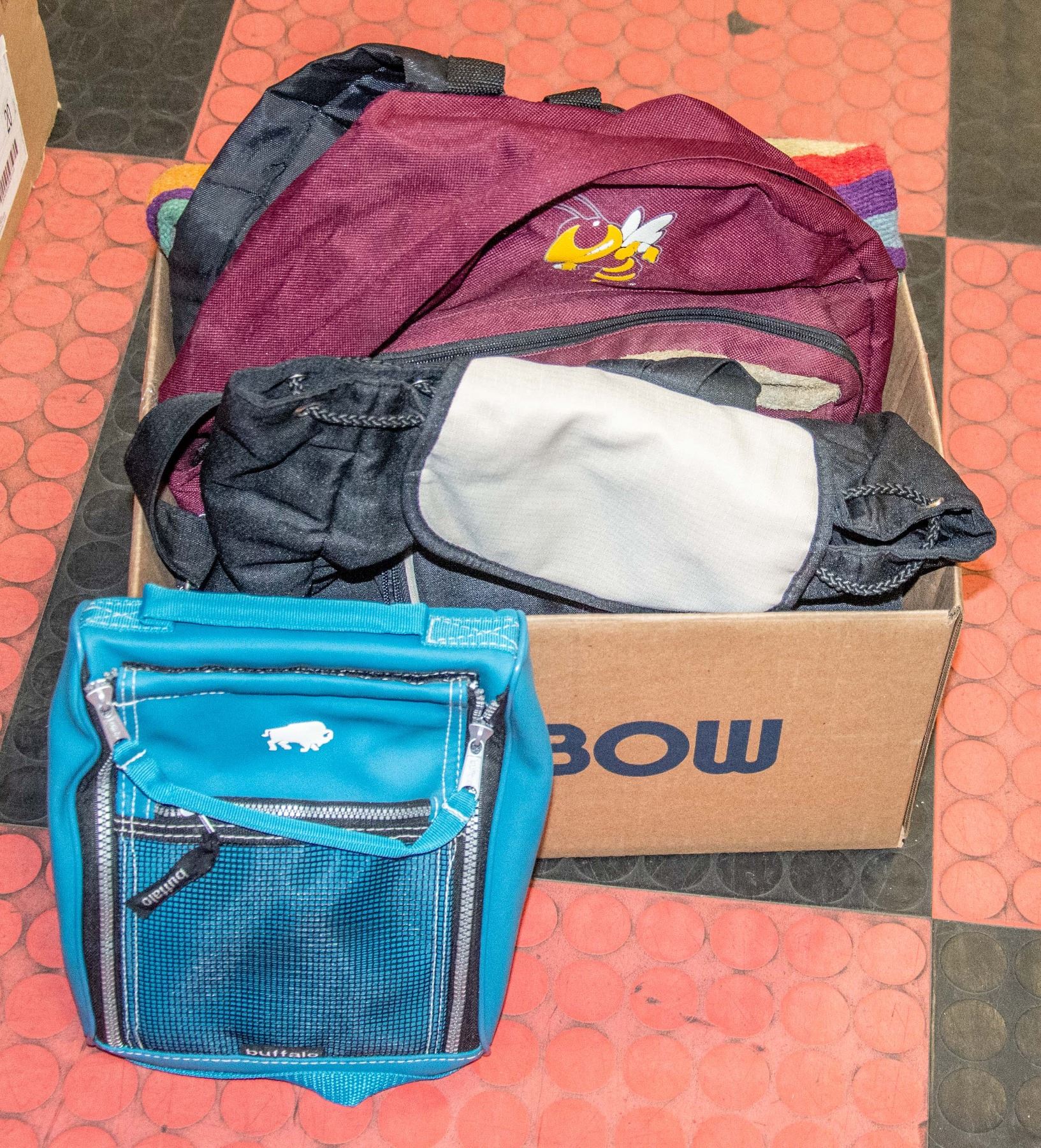 BRAND BLACK BACKPACK, BUFFALO BRAND MINI PACK, COLOFUL PATTERN CANVAS & LEATHER BAG, GEORGIA TECH YELLOW JACKETS BACKPACK