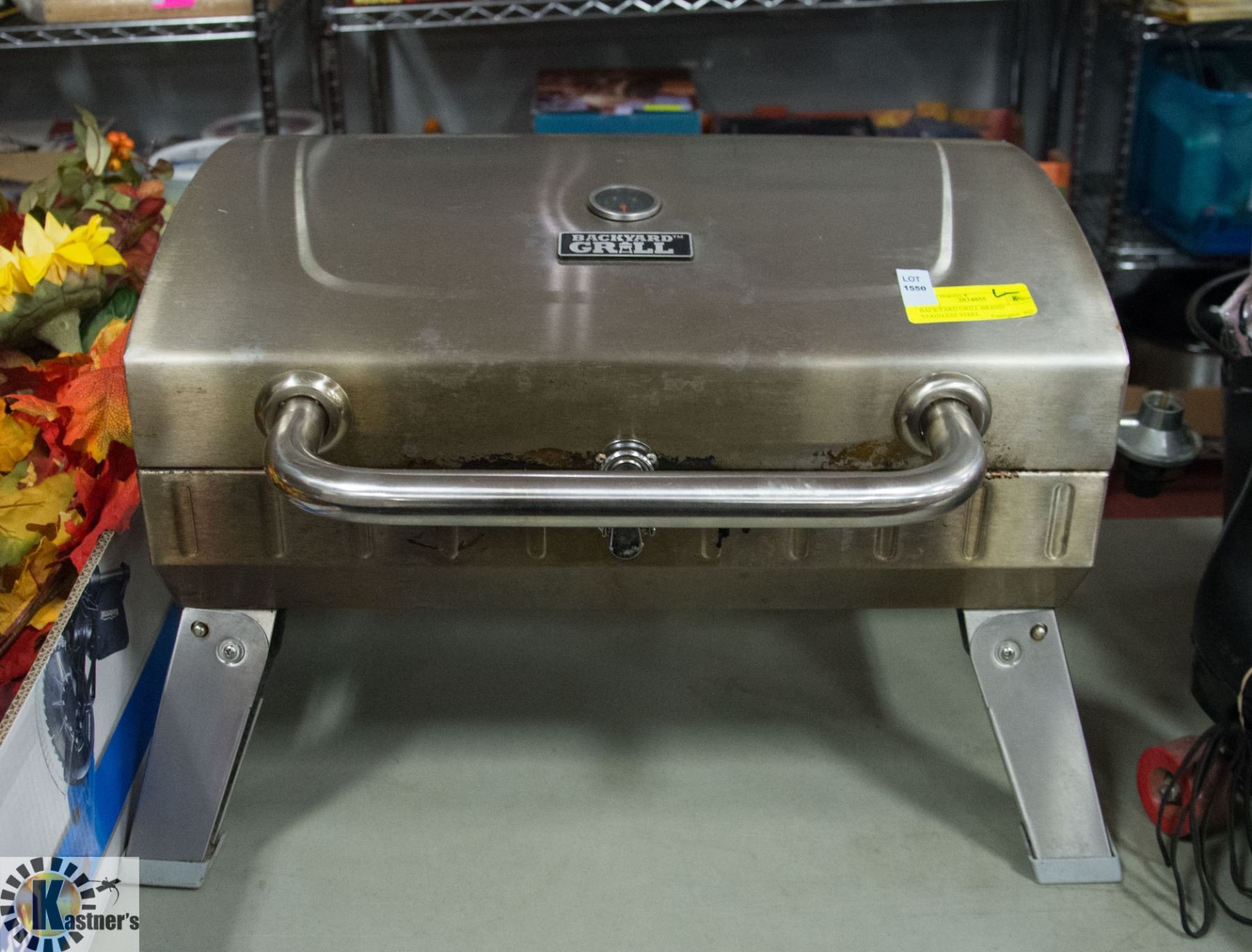 PORTABLE PROPANE BBQ, FOLD-UP LEGS, WORKING IGNITER, TEMPERATURE GAUGE IN LID, CLAMP DOWN LID FOR TRANSPORT, EASY CLEAN DRIP TRAY**ALL ITEMS MUST BE REMOVED BY 5PM MONDAY, OCTOBER 10TH, 2022. ALL REMAINING ITEMS WILL BE SUBJECT TO A $6.00 PER DAY STORAGE CHARGE. ANY ITEMS REMAINING AFTER MONDAY, OCTOBER 24TH, 2022 WILL BE CONSIDERED FORFEITED. NO REFUNDS WILL BE ISSUED FOR FORFEITED ITEMS. TO SCHEDULE A PICK UP APPOINTMENT CLICK HERE