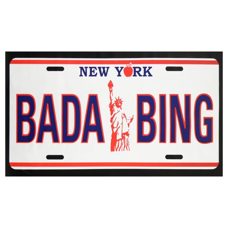 "Bada Bing" is a hand pulled limited edition silkscreen on canvas by Andy Warhol protege Steve Kaufman (1960-2010). This piece is AP numbered 4/50 and hand signed inverso. Includes letter of authenticity. As is common with Kaufman's works, this piece may have perceived minor flaws, but is in overall good condition. Measures approx. 46" x 24" (image). Please note: there are minor creases in the canvas that will likely be concealed when the piece is stretched.