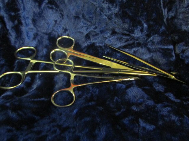 BAG ASSORTED STAINLESS STEEL SURGICAL LOCKING FORCEPS, SCISSORS & TWEEZERS