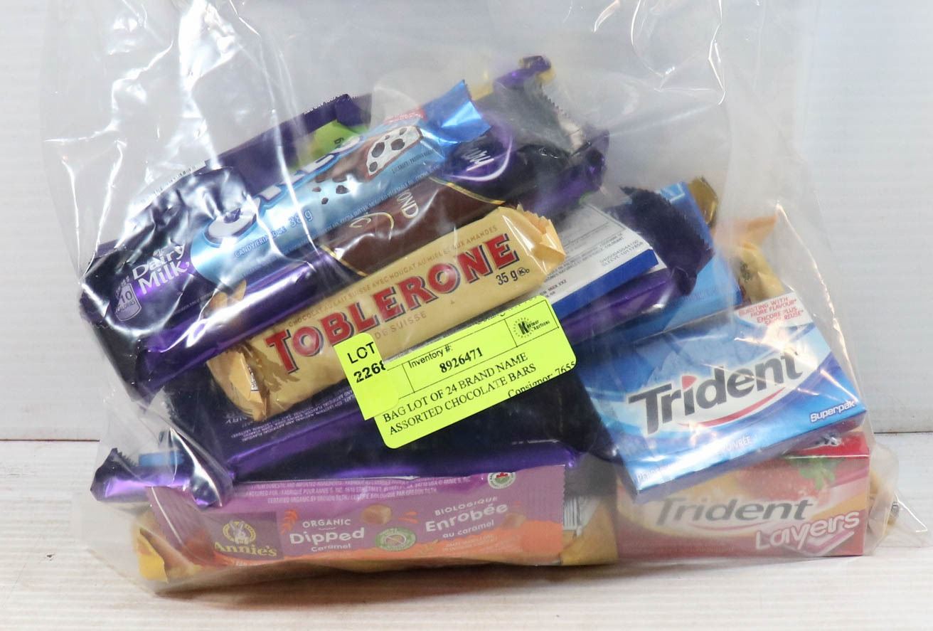 BAG LOT OF 24 BRAND NAME ASSORTED CHOCOLATE BARS