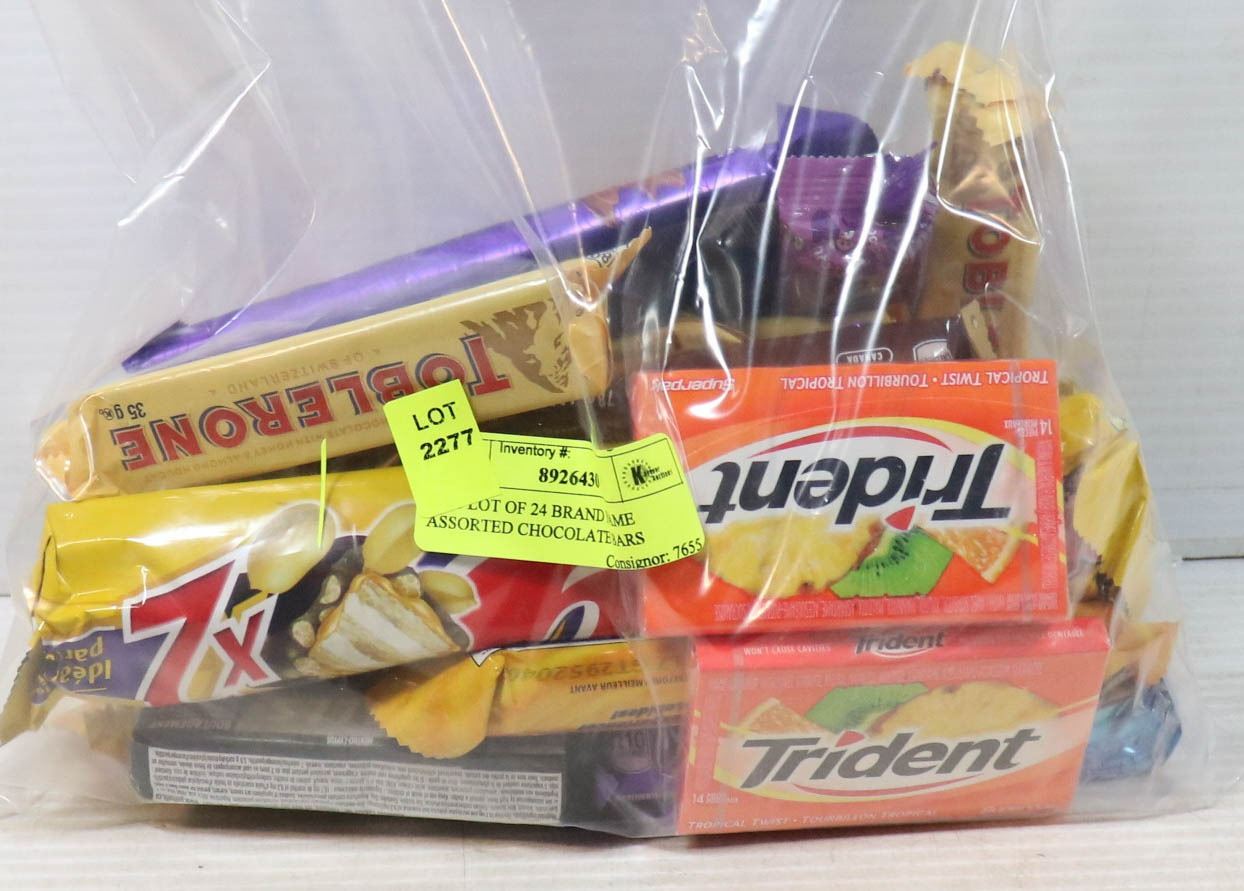 BAG LOT OF 24 BRAND NAME ASSORTED CHOCOLATE BARS