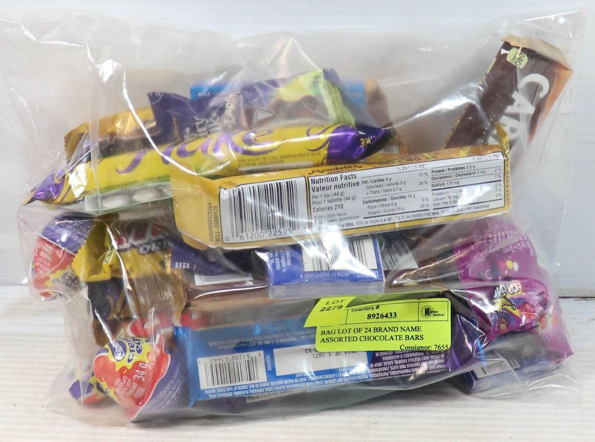 BAG LOT OF 24 BRAND NAME ASSORTED CHOCOLATE BARS