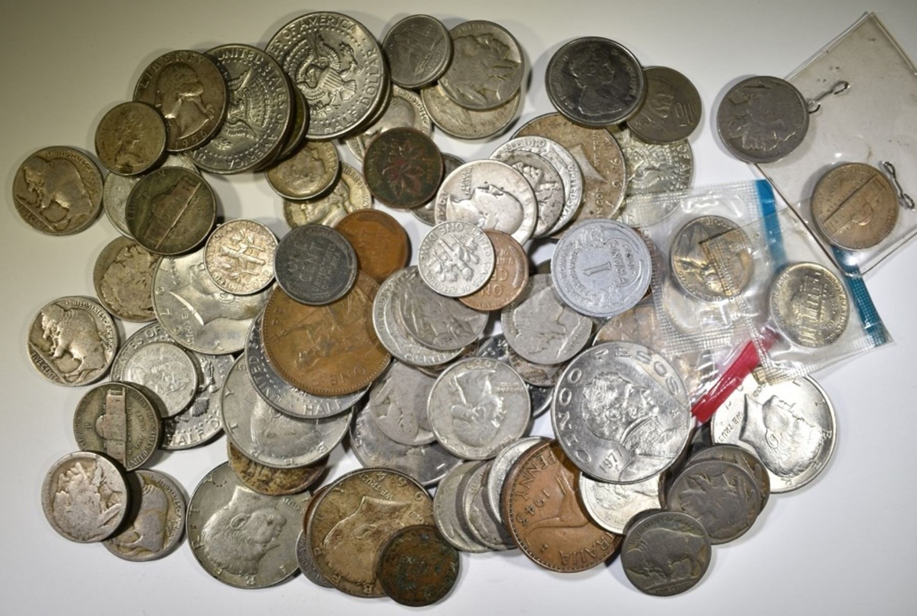$3.50 FACE VALUE IN 90% SILVER, $1 FACE VALUE IN 40% SILVER, $1.20 FACE VALUE IN CANADIAN SILVER COINS AND SOME OTHER MISC COINS ESTIMATE $200 - $300.