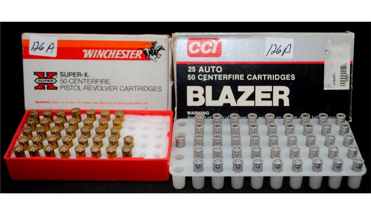 BAG LOT WITH 25 CALIBER AUTO CARTRIDGES - BOX OF 37 WINCHESTER 25 CALIBER AUTO CARTRIDGES AND BOX OF 45 .25 CALIBER AUTO CARTRIDGES