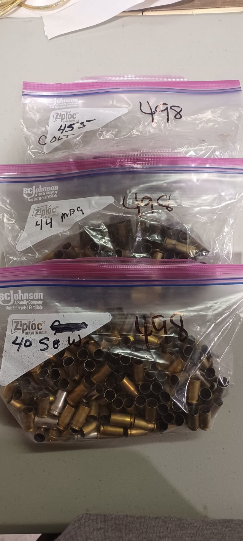 BAG OF 44 MAG, 455 COLT AND 40SW  CASINGS