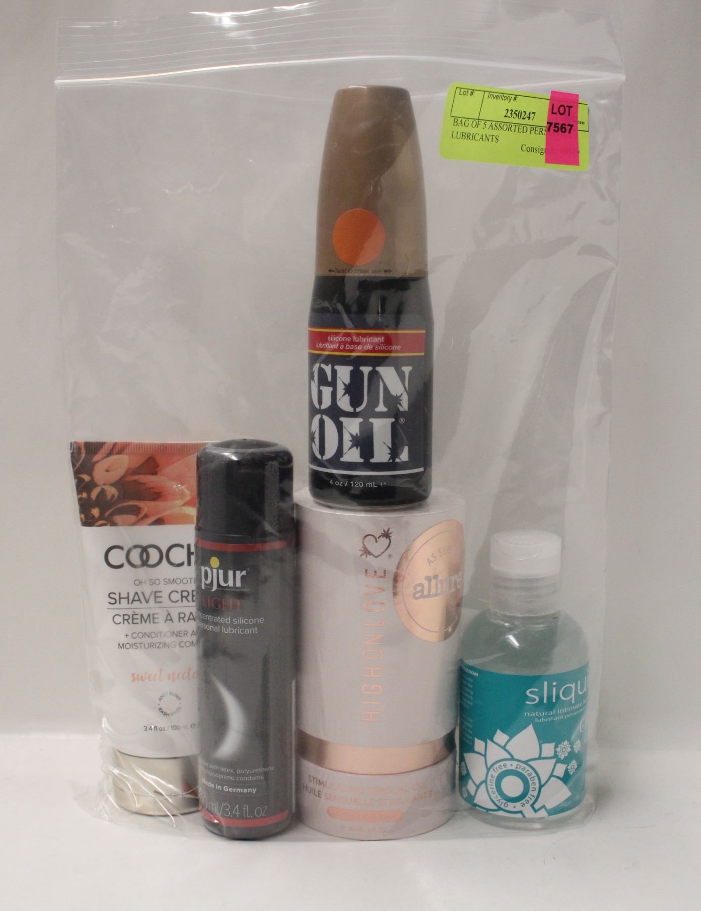 BAG OF 5 ASSORTED PERSONAL LUBRICANTS