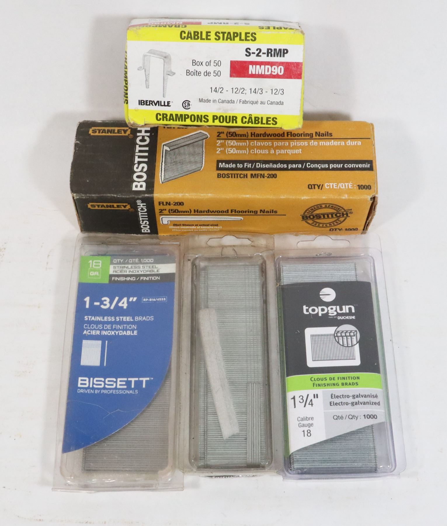 BAG OF ASSORTED BRADS, NAILS, STAPLES
