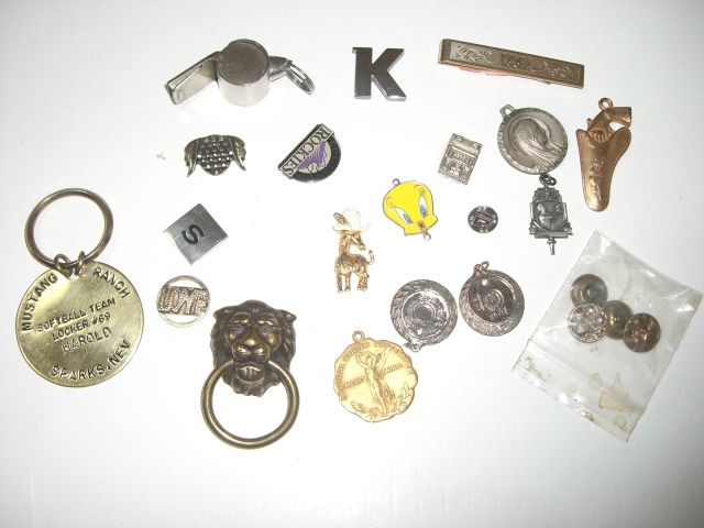 BAG OF ASSORTED VINTAGE ITEMS INCLUDING WHISTLE/DOOR KNOCKER/TIE-TACKS/PENDANTS/PINS & MORE!! ITEMS CAME OUT OF SAFE!! ***Coin, Currency & All Items Listed in this auction - Grades, Conditions and Values are not Safe Deposit Coins LLC Responsibilty. Grades, Condition and Values are determined by Consigner(s) & Buyers ONLY