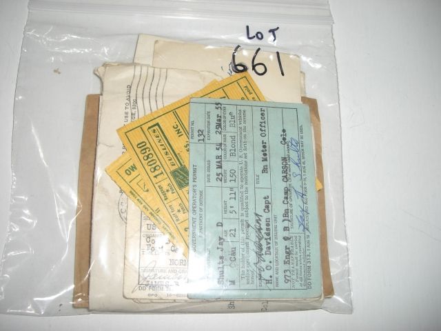 BAG OF ASSORTED VINTAGE *KOREAN WAR* MILITARY PAPERWORK INCLUDING SELECTIVE SERVICE LETTER MAIL/3 CENT STAMPS/US GOVT PERMITS & MORE!! ITEMS CAME OUT OF SAFE!! ***Coin, Currency & All Items Listed in this auction - Grades, Conditions and Values are not Safe Deposit Coins LLC Responsibilty. Grades, Condition and Values are determined by Consigner(s) & Buyers ONLY