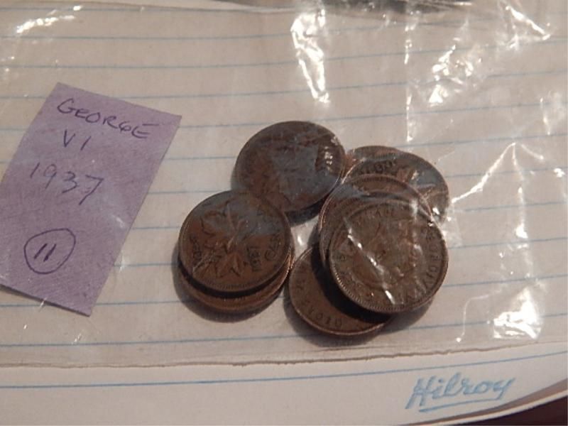 BAG OF COINS - KING GEORGE VI - 1937 AND QUARTER (1867-1967) & 1837 ½ PENNY AND KING GEORGE V - 1932 & PENNY - 1913 = 3 PKGS TOTAL