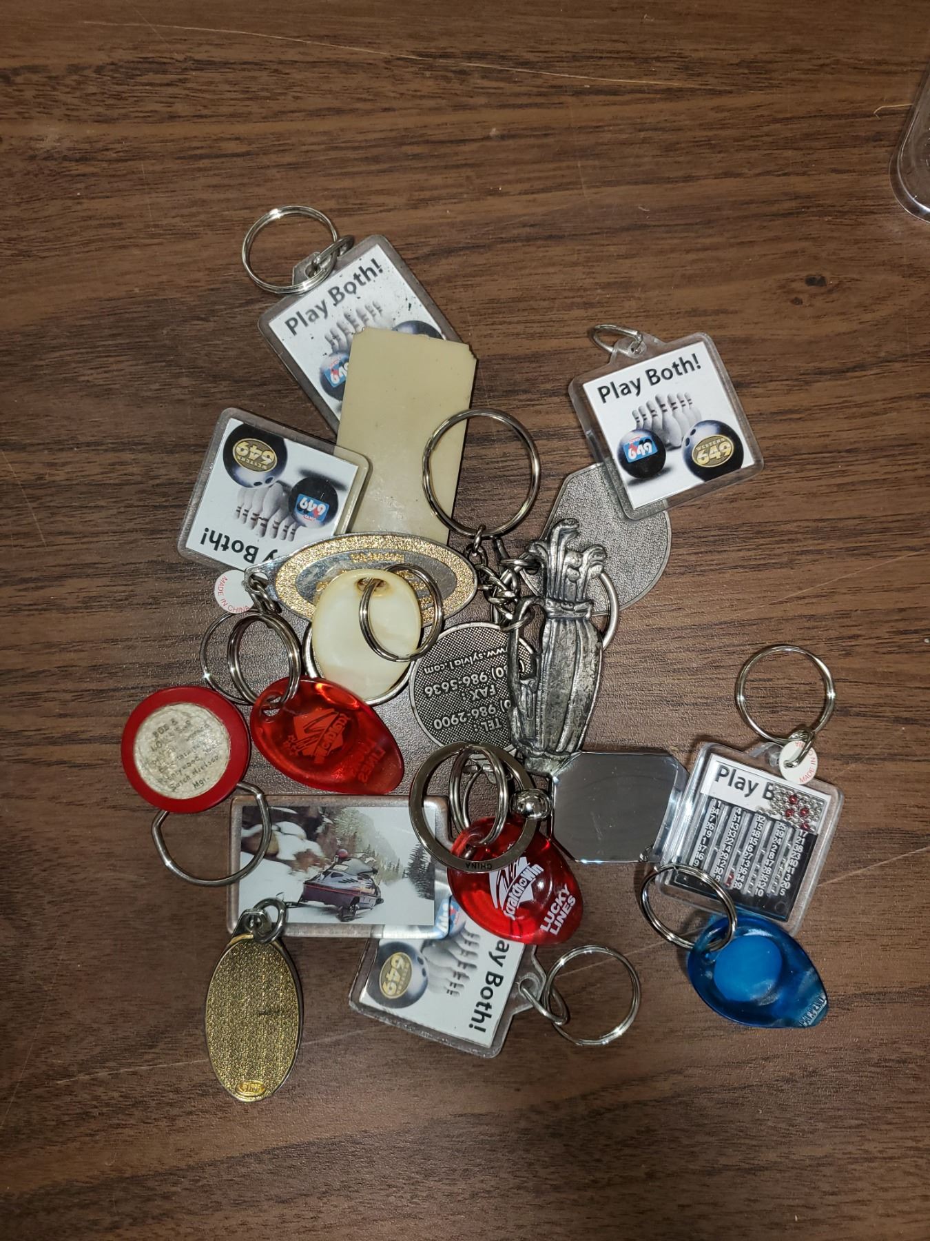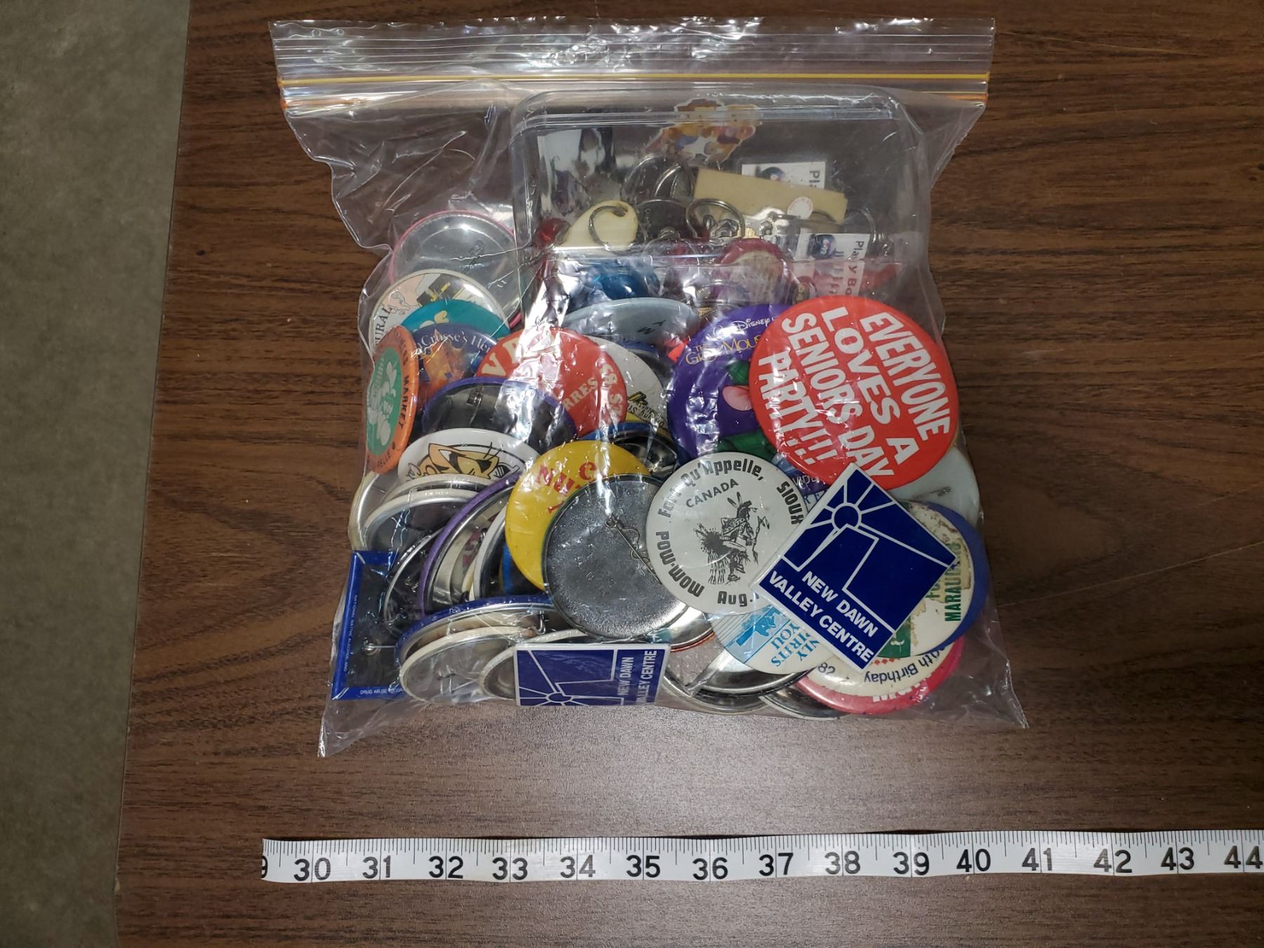 BAG OF COLLECTIBLE BUTTONS & KEY CHAINS