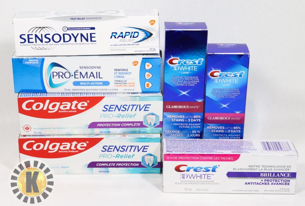 BAG OF CREST 3D WHITE AND COLGATE TOOTHPASTE