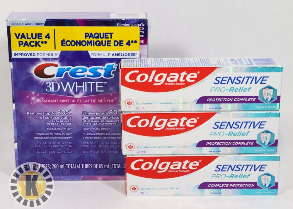 BAG OF CREST 3D WHITE AND COLGATE TOOTHPASTE