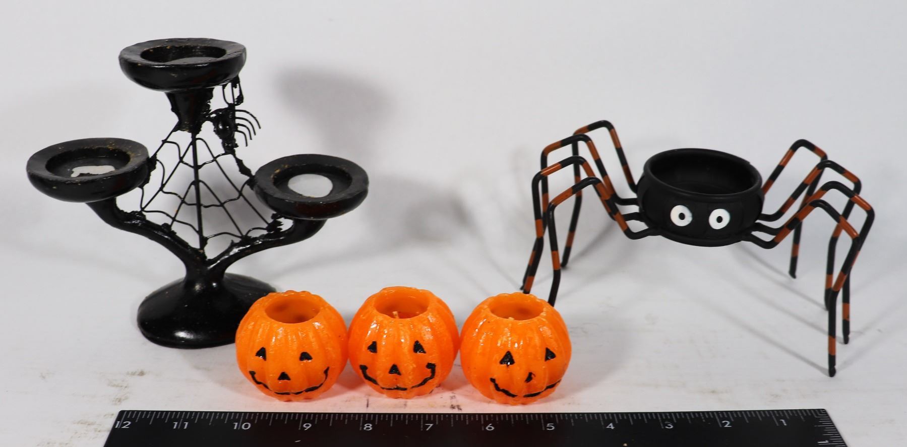 BAG OF HALLOWEEN CANDLES AND CANDLE HOLDERS