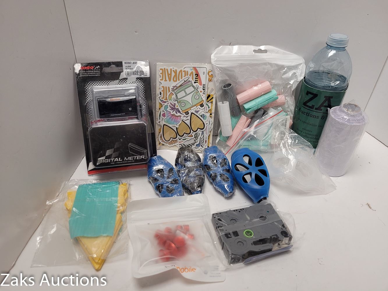 BAG OF MISC NEW ITEMS - INCL DIGITAL METER, CAR SCENTS (LEMON), ETC.