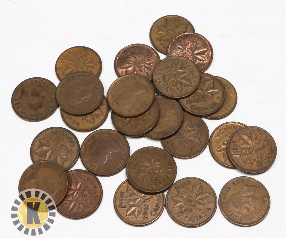 BAG OF MIXED CANADIAN PENNIES, SOME AS OLD AS