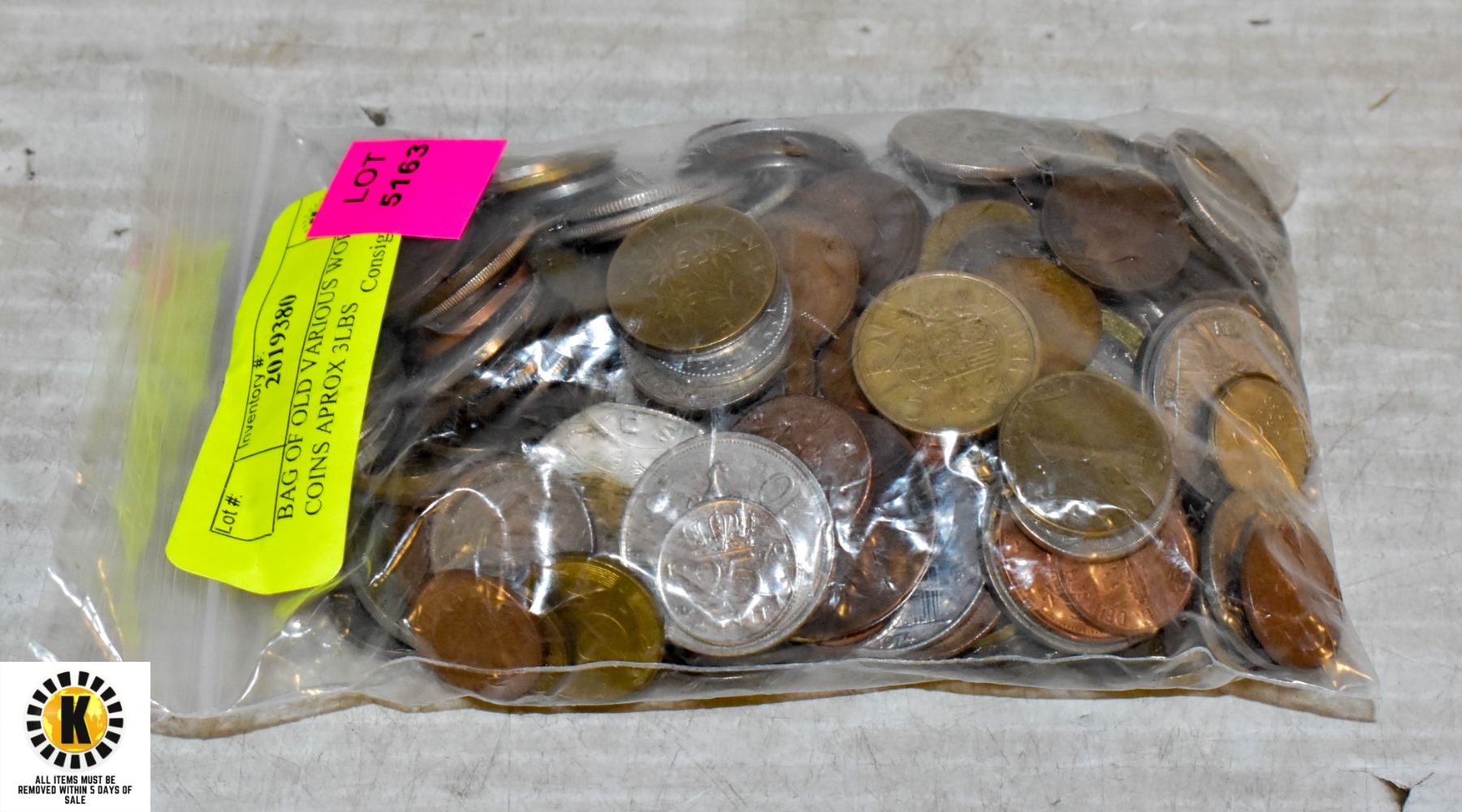 BAG OF OLD VARIOUS WORLD COINS APROX 3LBS
