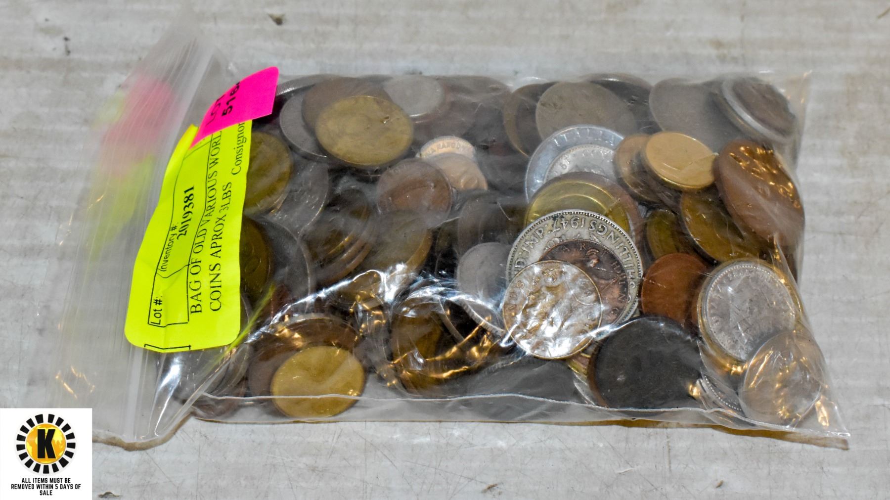 BAG OF OLD VARIOUS WORLD COINS APROX 3LBS