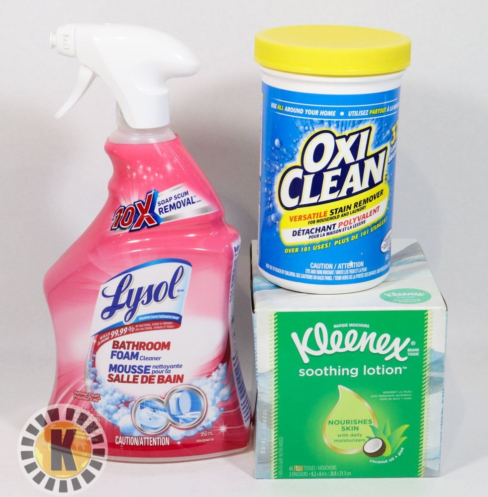 BAG OF OXI CLEAN STAIN CLEANER AND LYSOL SPRAY