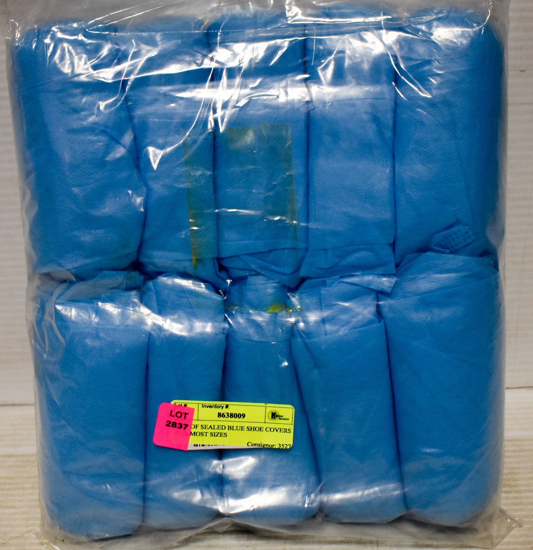 BAG OF SEALED BLUE SHOE COVERS FITS MOST SIZES