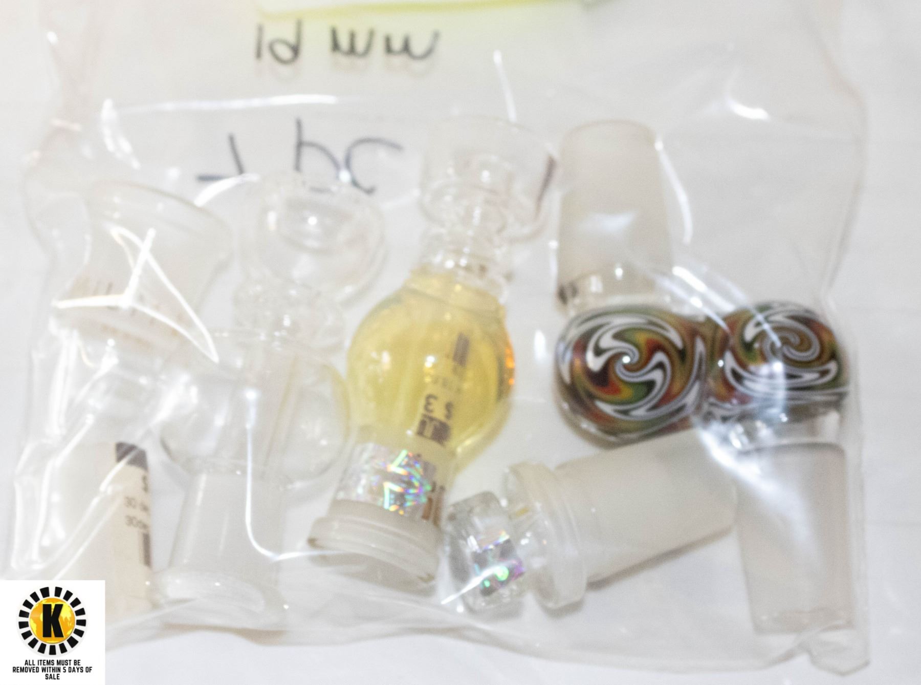BAG OF SEVEN 19MM GLASS ATTACHMENTS