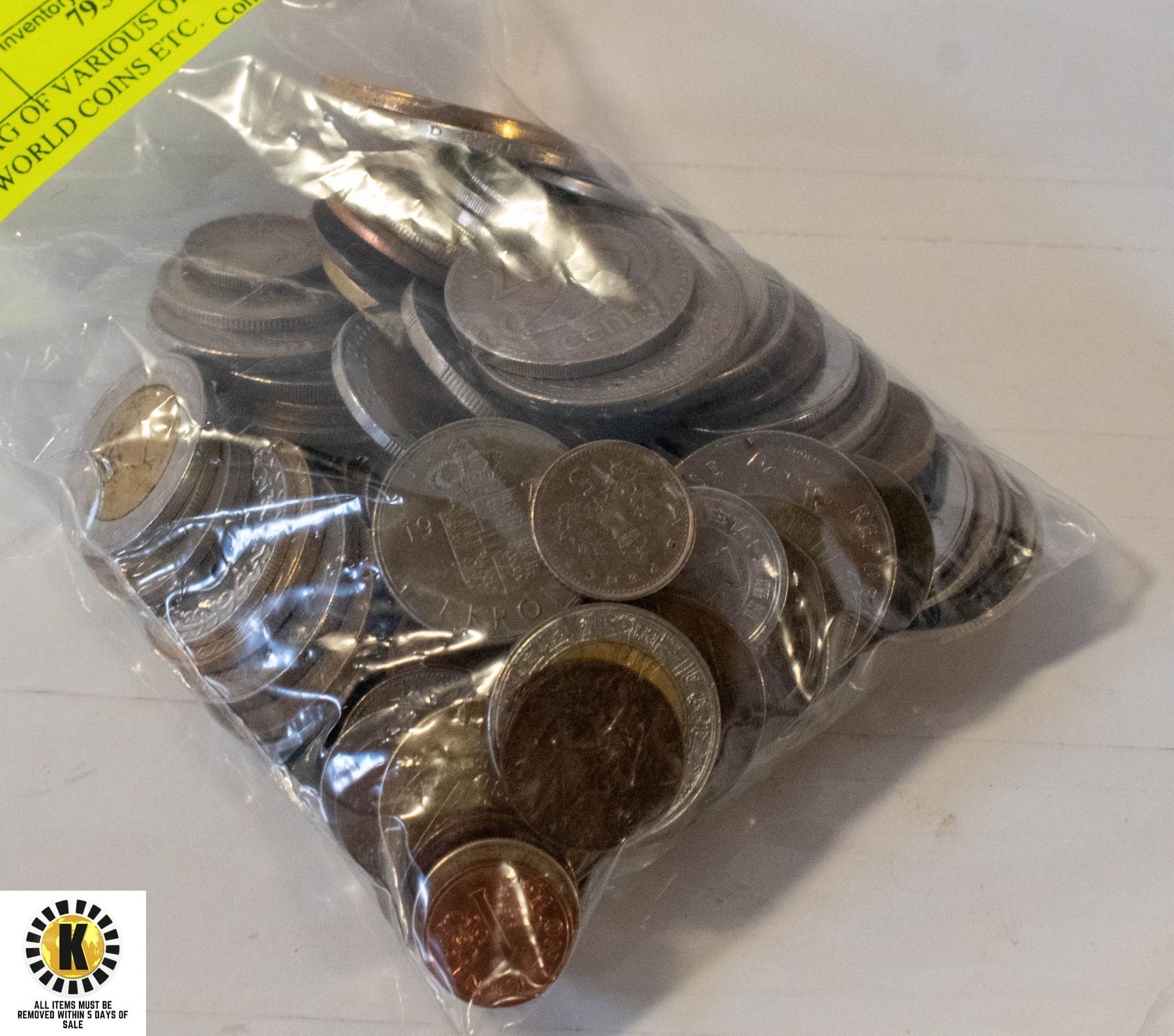 BAG OF VARIOUS OLD MIXED WORLD COINS ETC.