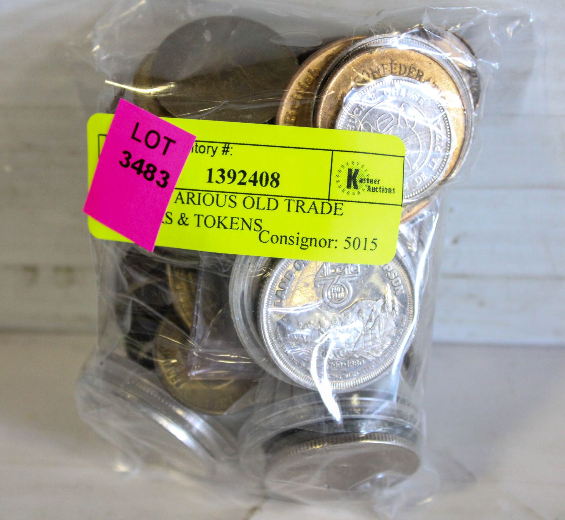 BAG OF VARIOUS OLD TRADE DOLLARS & TOKENS