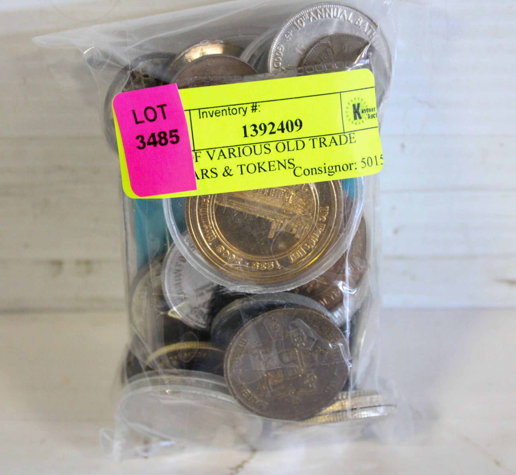 BAG OF VARIOUS OLD TRADE DOLLARS & TOKENS