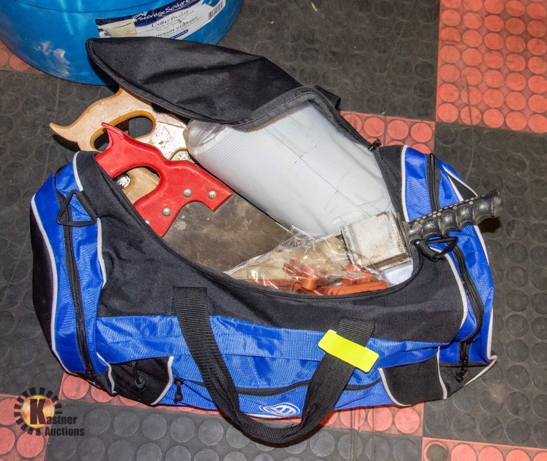 BAG OF VARIOUS TOOLS, SAWS, ACCESSORIES, ETC