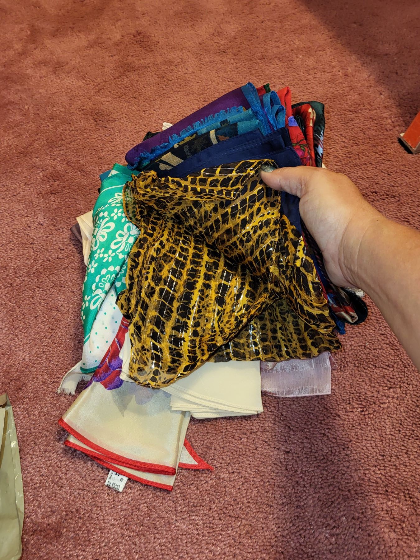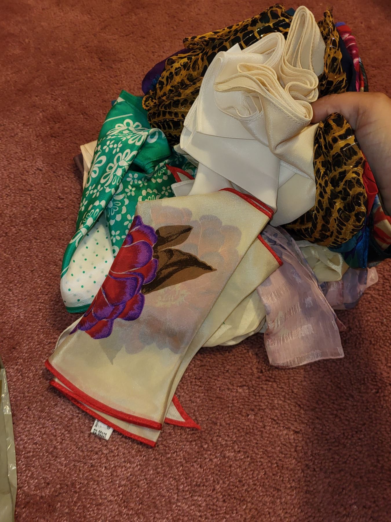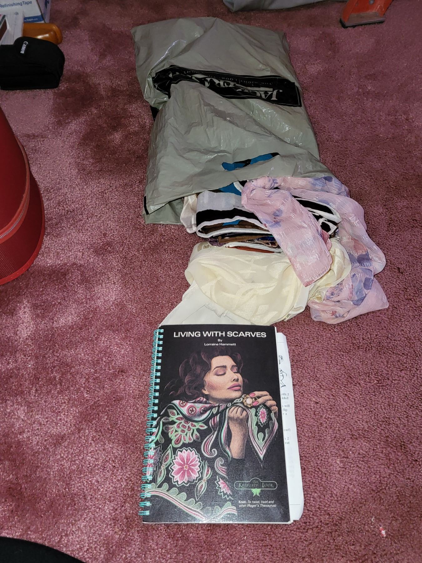 BAG OF VINTAGE SCARVES AND SCARF BOOK