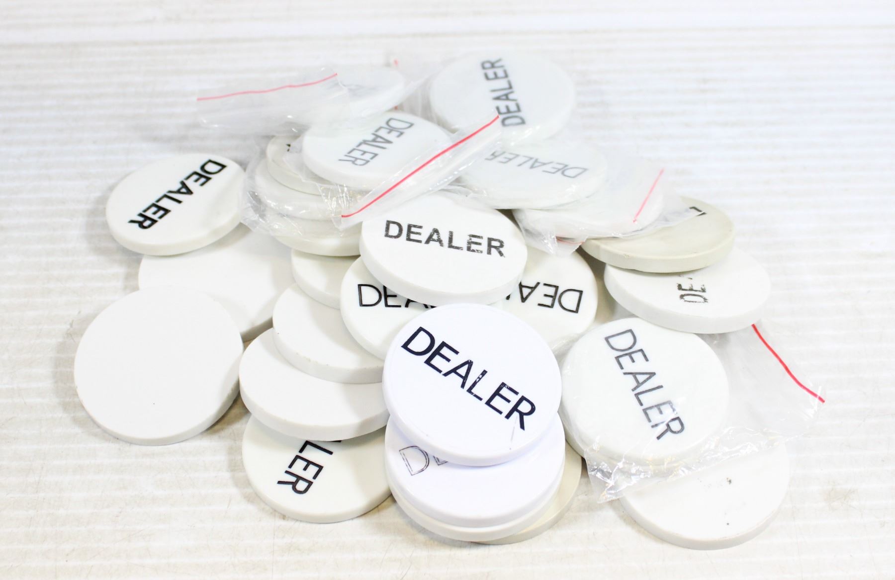 BAG OF WHITE DEALER BUTTONS FOR POKER