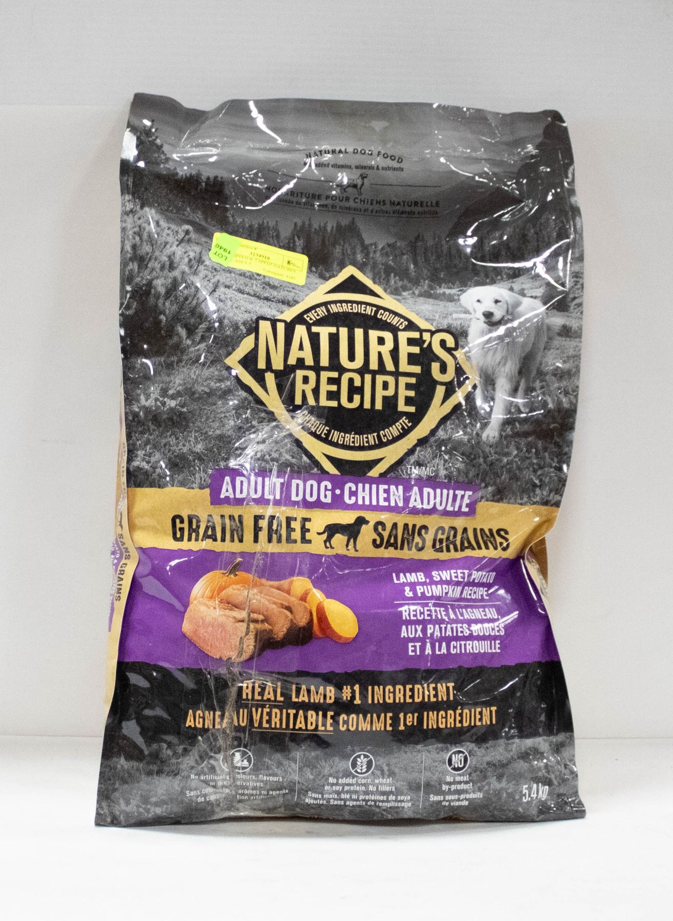 DOG GRAIN FREE DRY FOOD LAMB SWEET POTATO & PUMPKIN RECIPE 5.4KG BB JUNE 12 2024 **ALL ITEMS MUST BE REMOVED BY 5PM SATURDAY, AUGUST 3RD 2024. ALL REMAINING ITEMS WILL BE SUBJECT TO A $6.00 PER DAY STORAGE CHARGE. ANY ITEMS REMAINING AFTER MONDAY, AUGUST 19TH 2024 WILL BE CONSIDERED FORFEITED. NO REFUNDS WILL BE ISSUED FOR FORFEITED ITEMS. TO SCHEDULE A PICK UP APPOINTMENT CLICK HERE