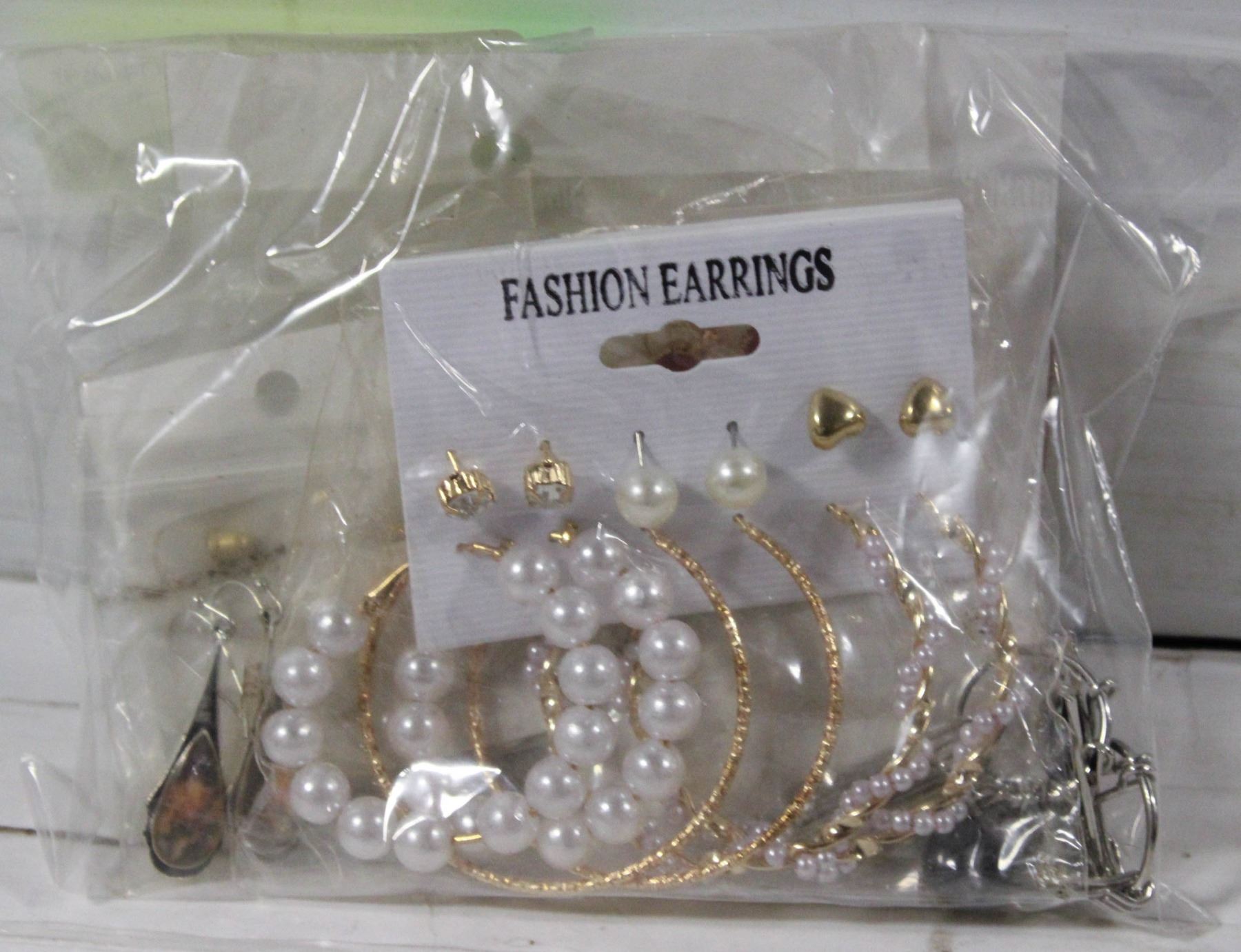 BAG W/ 10 SETS OF NEW COSTUME JEWELLERY.