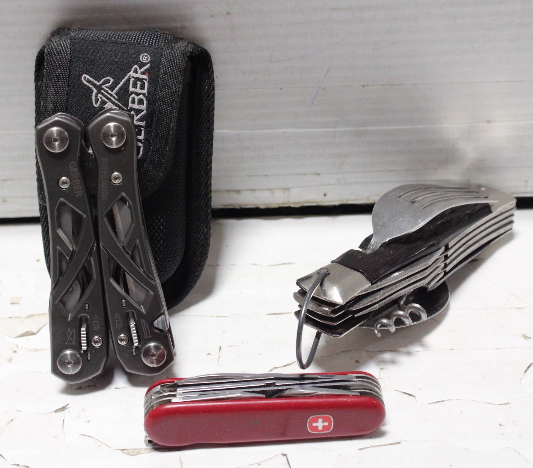 BAG WITH 3 MULTI TOOLS GERBER /SWISS ARMY &