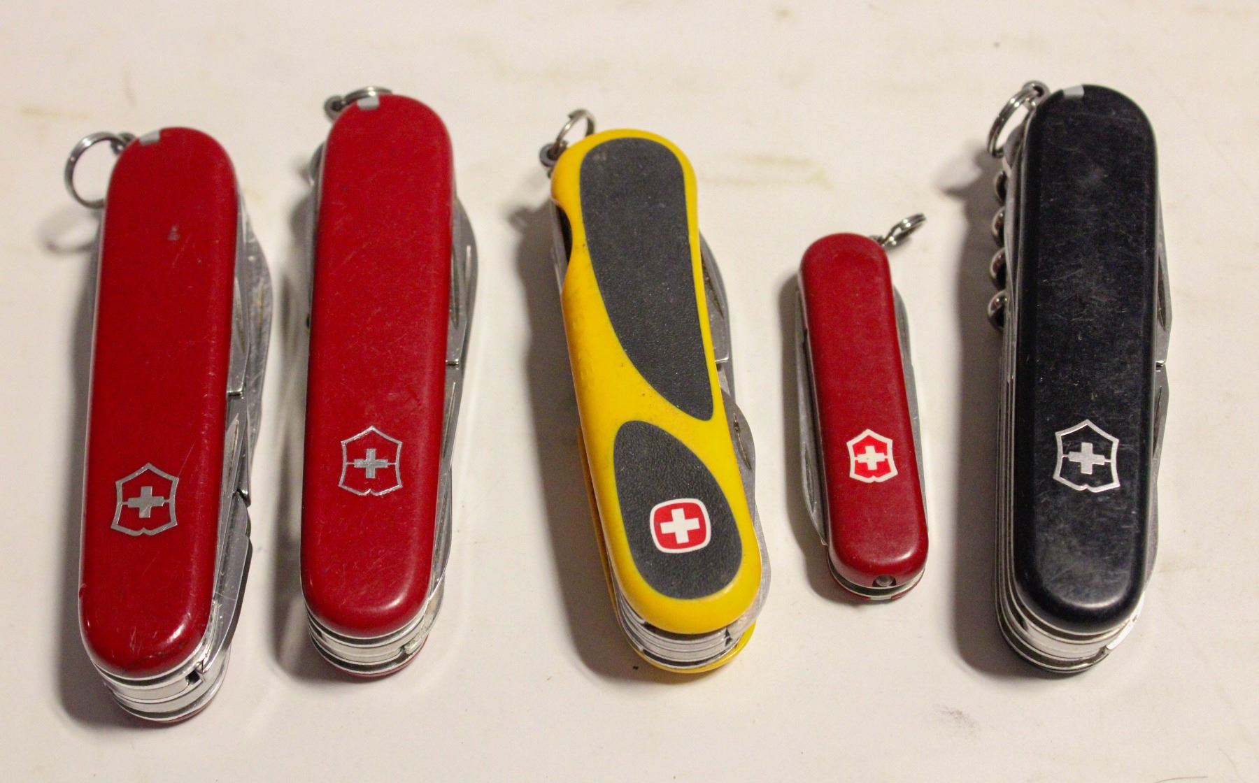 BAG WITH 5 SWISS ARMY KNIVES