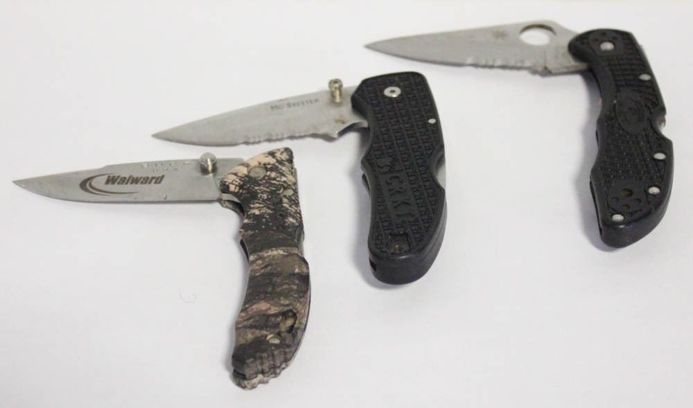 BAG WITH BUCK, CRKT AND SPYDERCO KNIFE