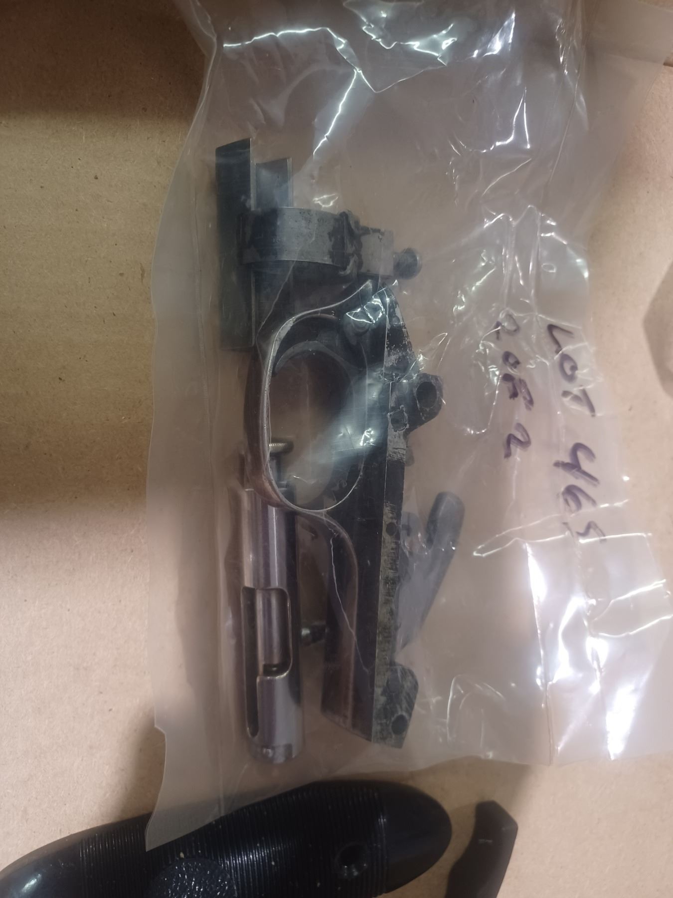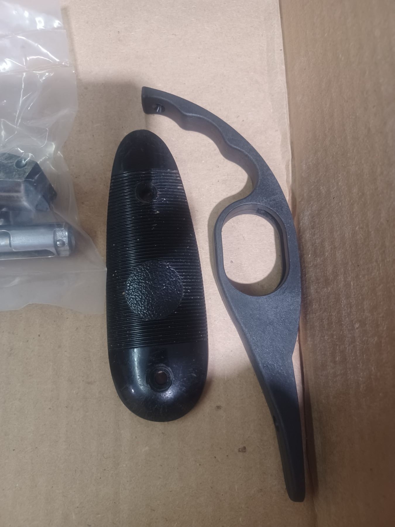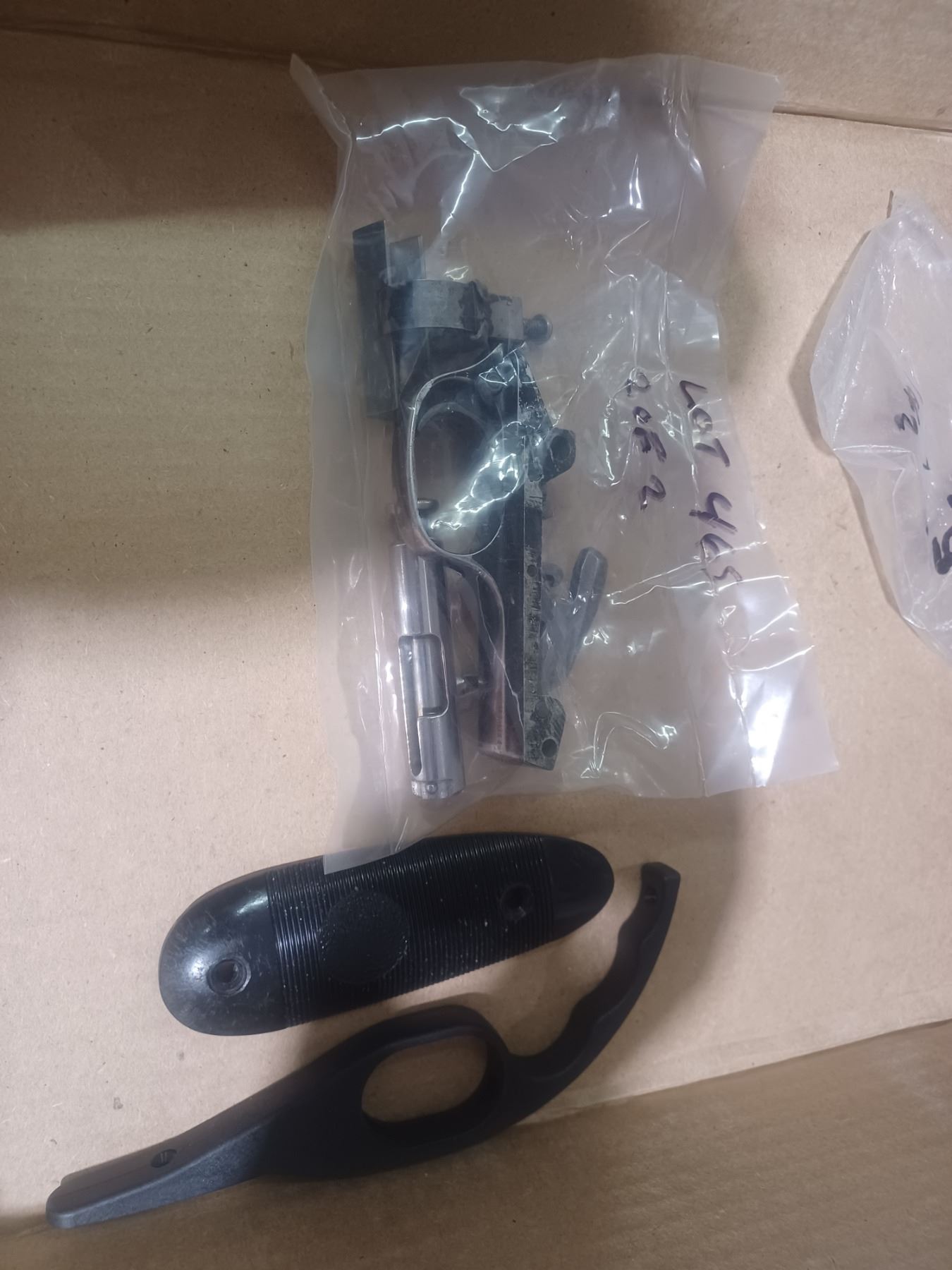 BAG WITH MOSSBERG 350K BUTT PLATE & TRIGGER GUARD PLUS BAG OF 22 PARTS