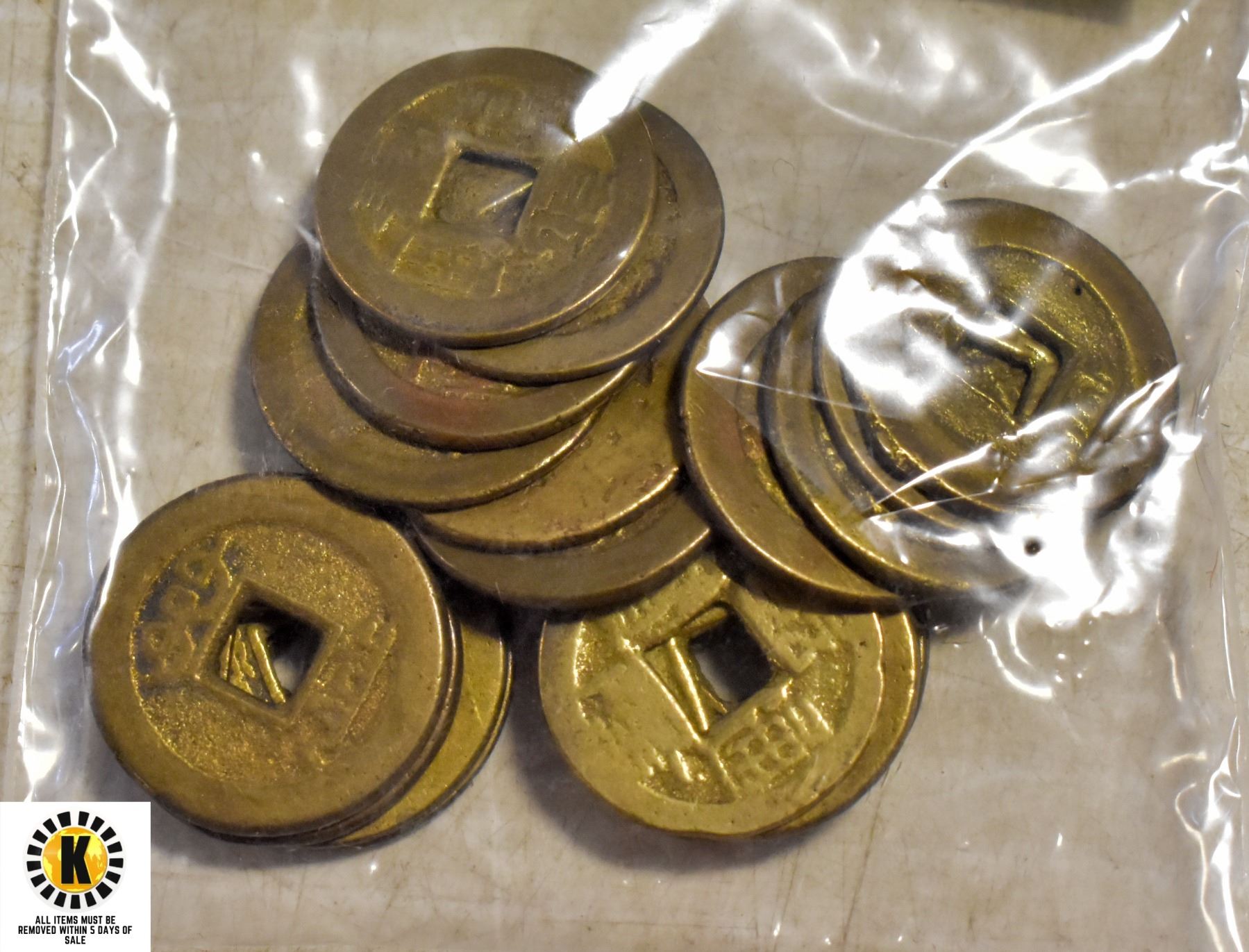 BAG WITH OLD CHINESE CASH COIN ORNAMENT
