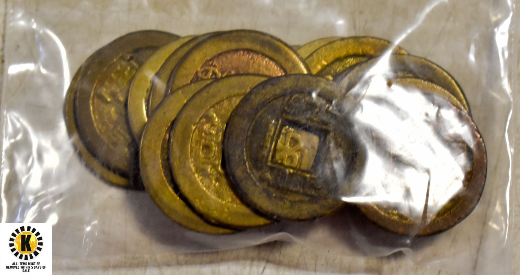 BAG WITH OLD CHINESE CASH COIN ORNAMENT