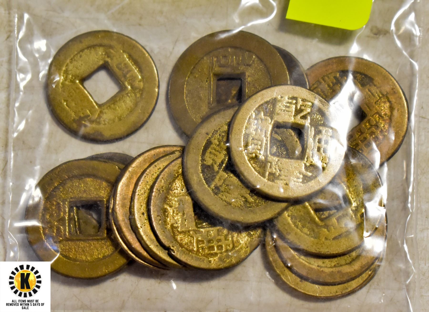BAG WITH OLD CHINESE CASH COIN ORNAMENT